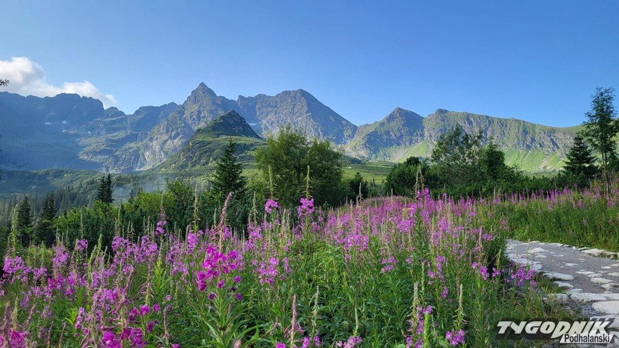 Lazur nieba, nieliczne chmury i kwitnące na fioletowo-wrzosowo wierzbówki - nic dziwnego, że od rana na tatrzańskich szlakach duży ruch.