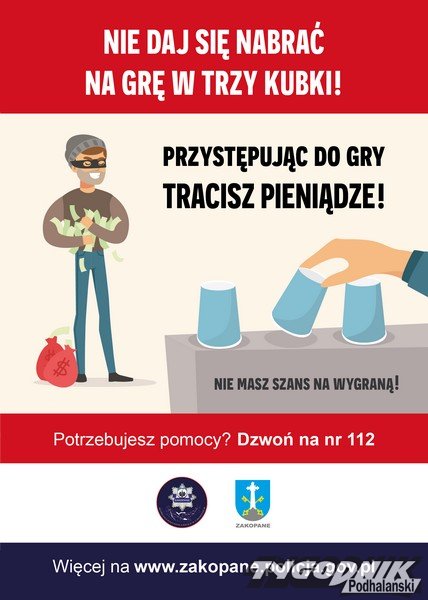 W tę grę zawsze wygrywa szajka oszustów, miasto i policja w Zakopanem ostrzega, nie daj się nabrać.