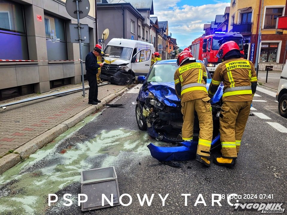 Wypadek zdarzył się dziś około 7 rano w centrum Nowego Targu, na ulicy Szaflarskiej. Na szczęście w zderzeniu nikt nie ucierpiał. Na miejscu pracują strażacy i policjanci. Ruch jest utrudniony.