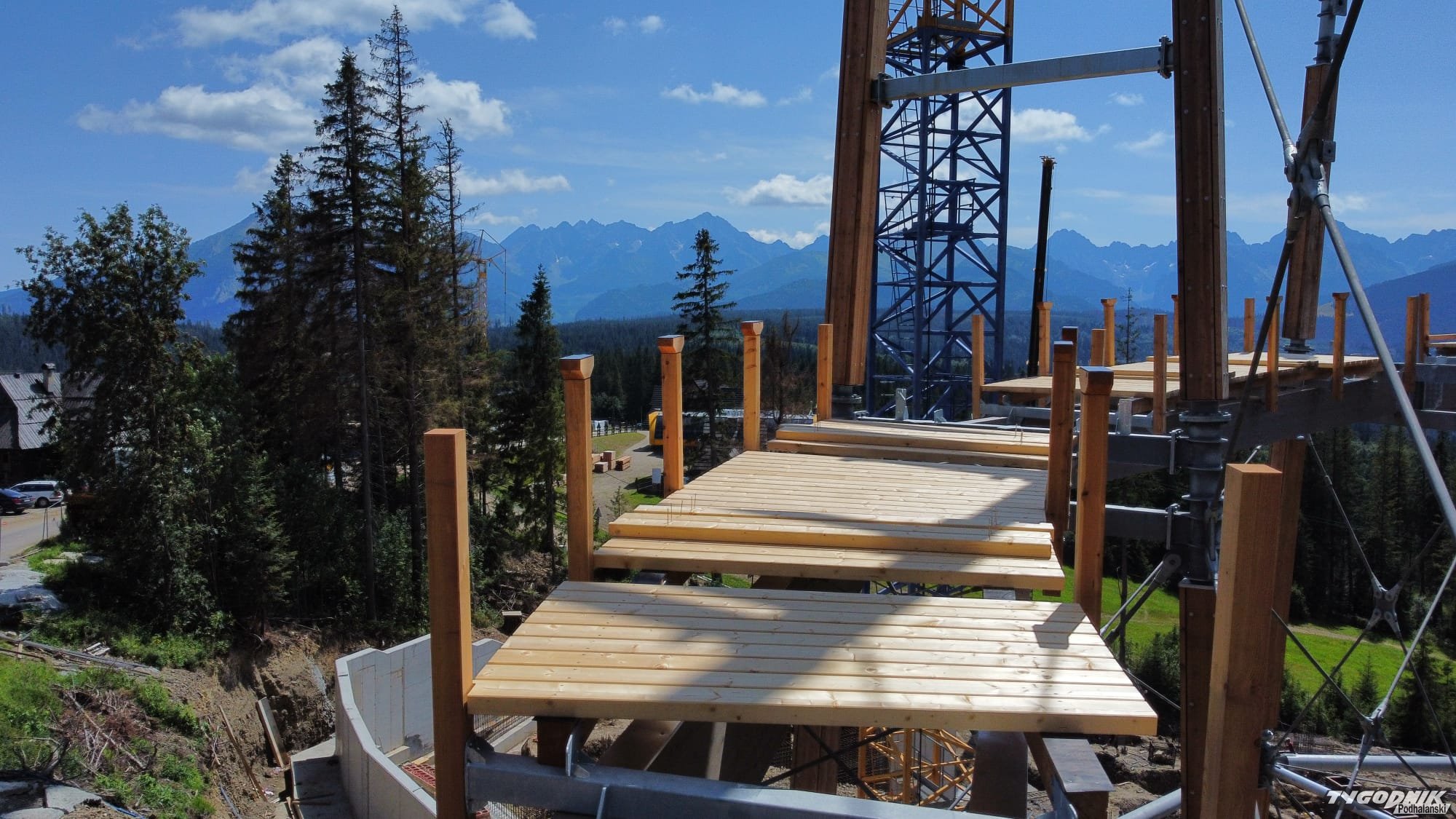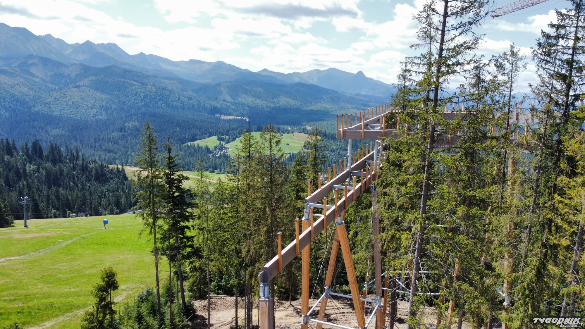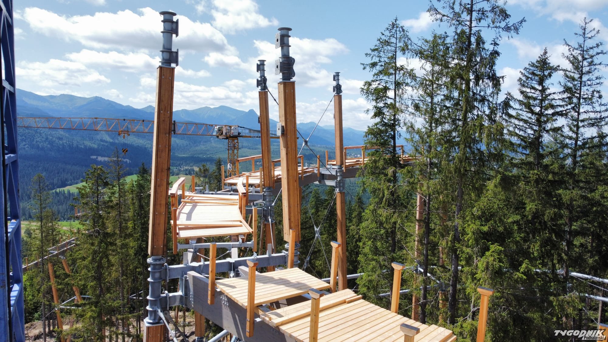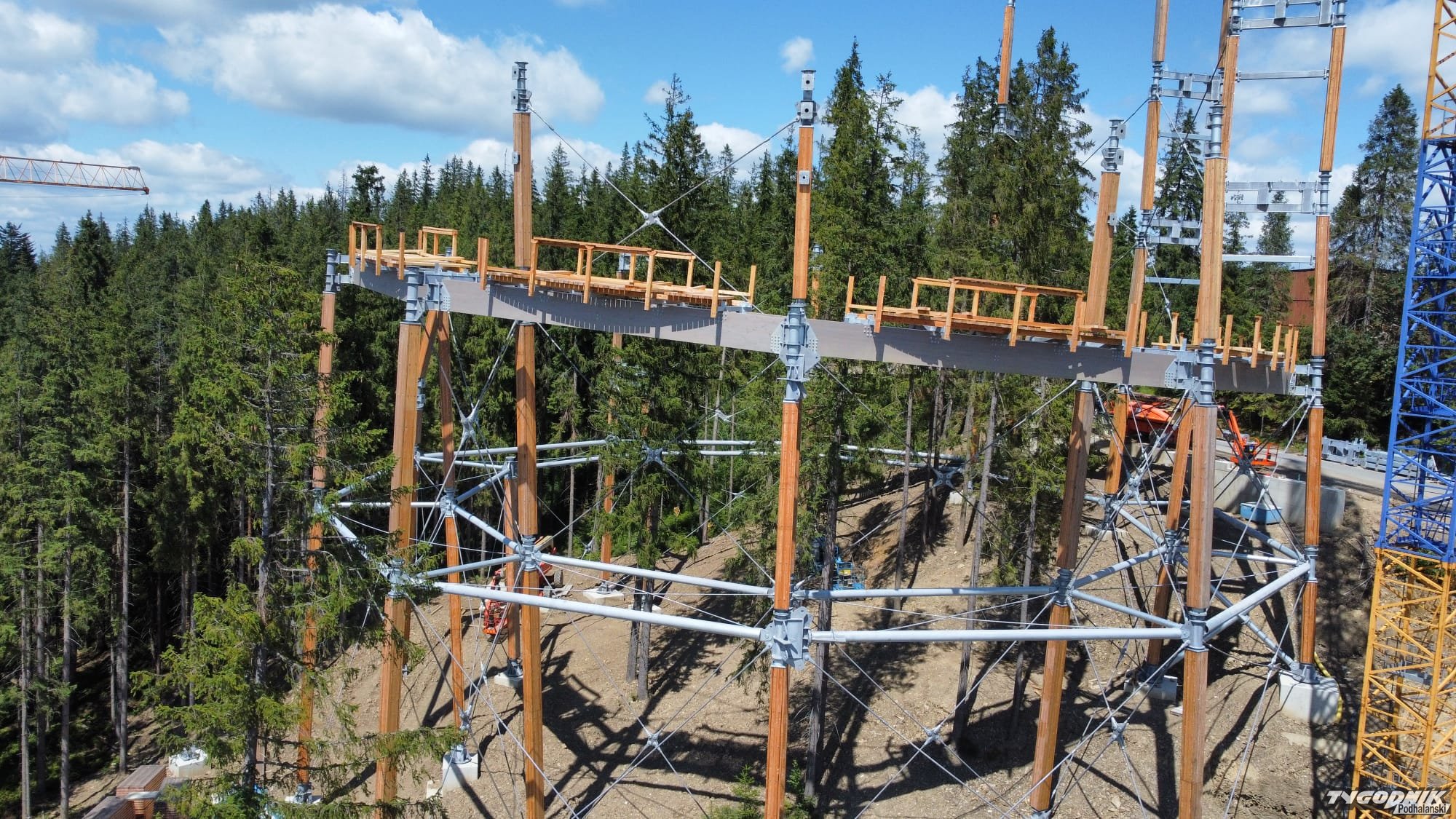 Budowa ścieżki w koronach drzew obok Polany Zgorzelisko w gminie Poronin zbliża się do finału.