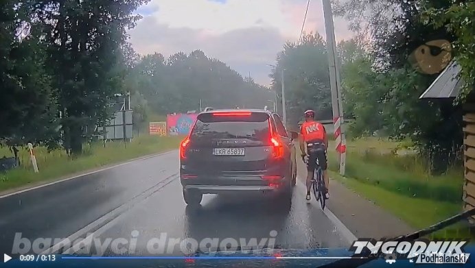 Taka sytuacja na zakopiance w Białym Dunajcu. Volvo kontra rowerzysta