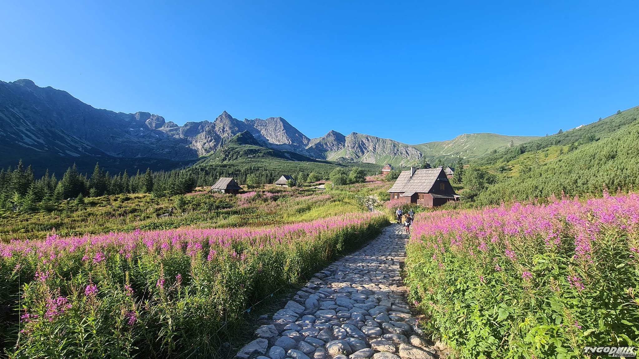 Niebo bez jednej chmurki, kwitnąca wierzbówka kiprzyca i jeszcze niewielu turystów, tak wyglądał dziś poranek na Hali Gąsienicowej.