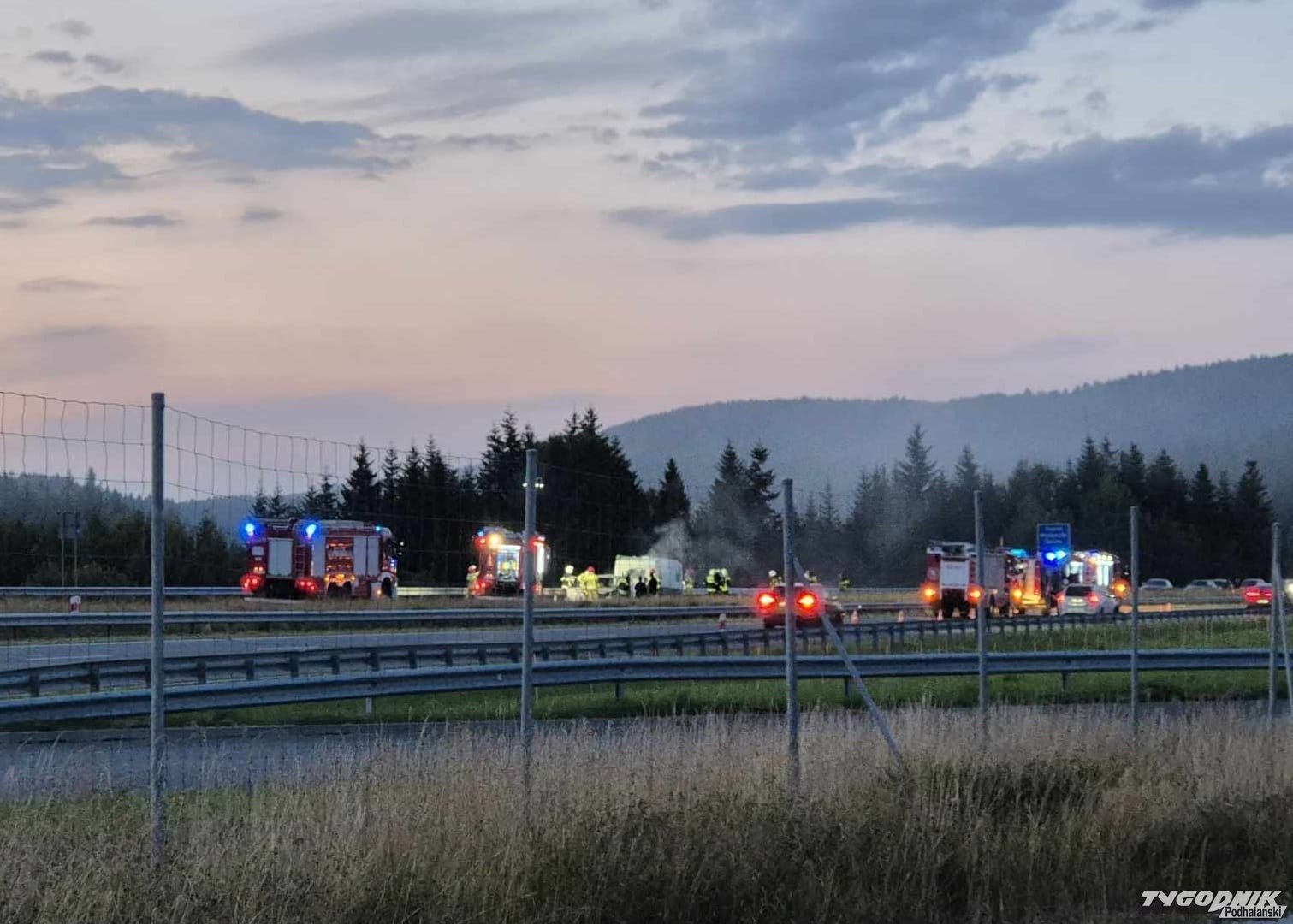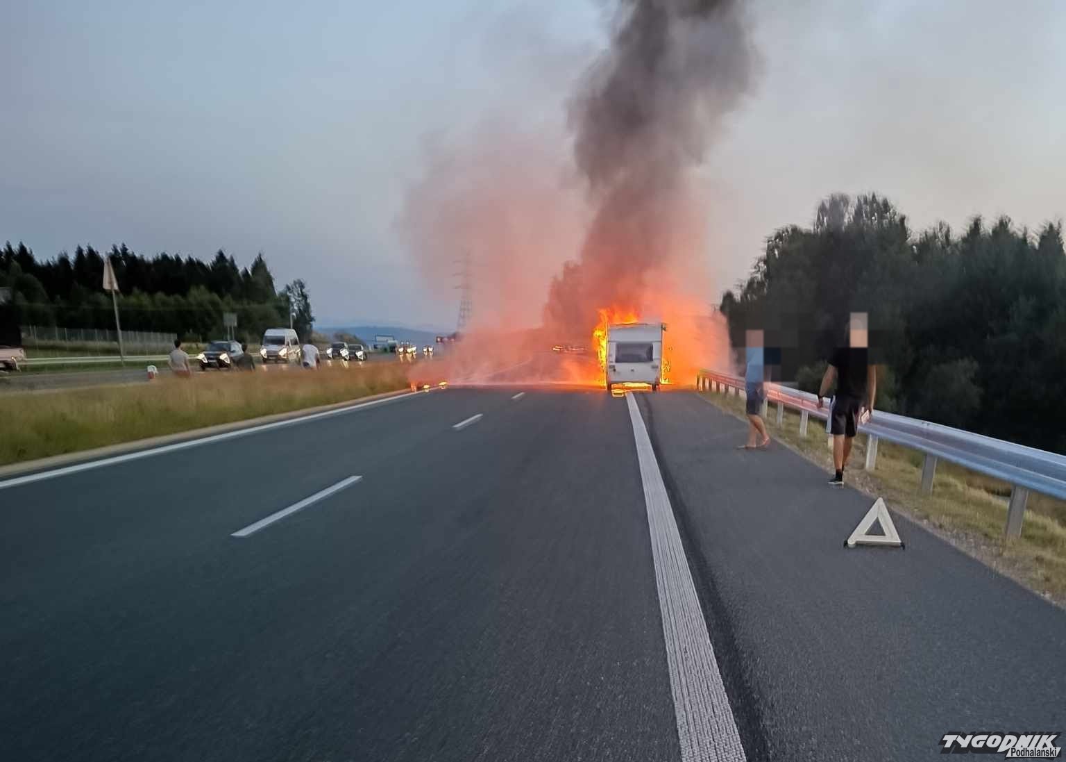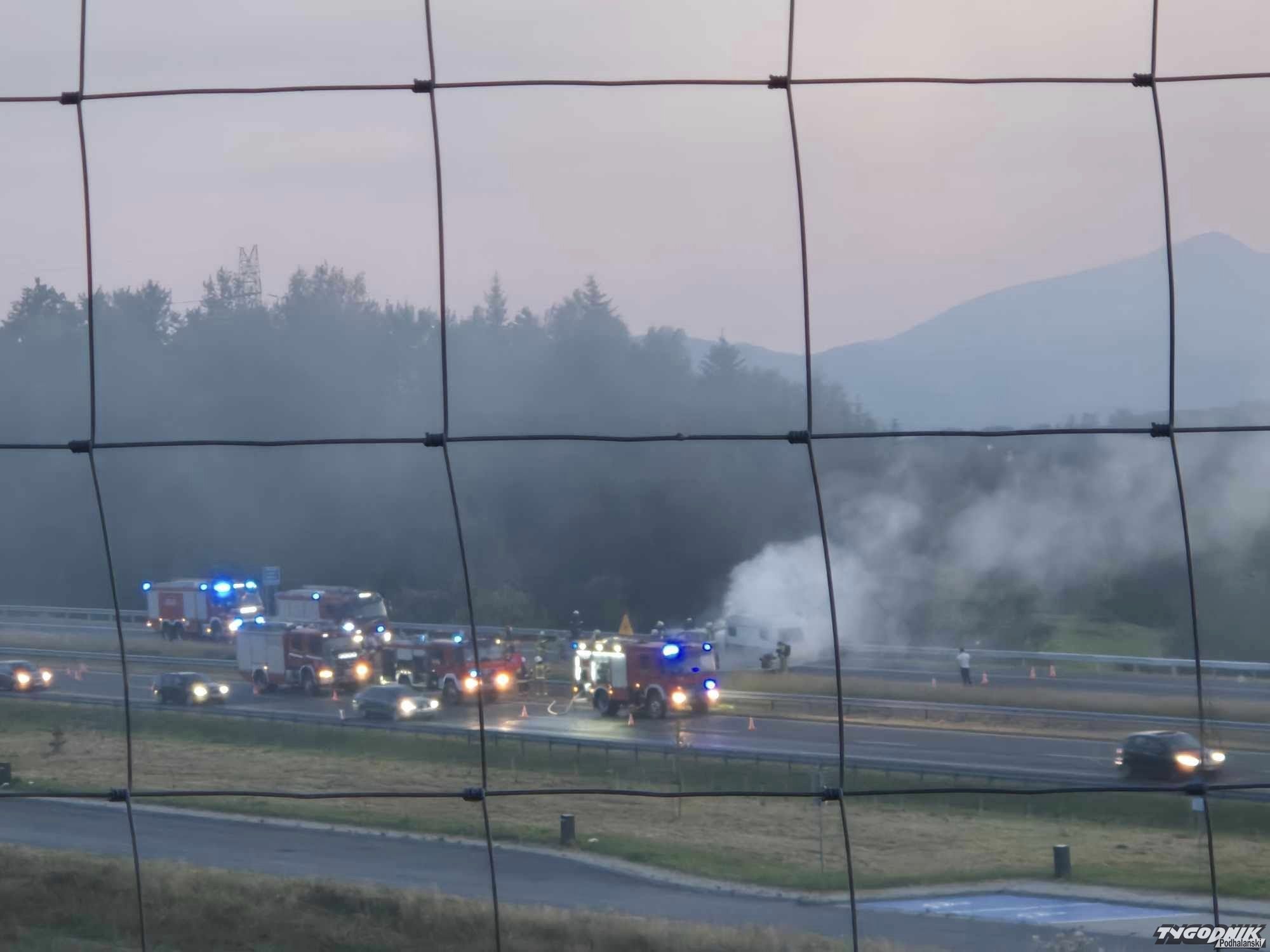 Do pożaru doszło około godz. 21.00 niedaleko od wlotu tunelu pod Luboniem Małym od strony Krakowa. Auto stanęło w płomieniach. na miejsce natychmiast wyruszyły strażackie jednostki: OSP Skomielna Biała, OSP Naprawa, OSP Jordanów i z Jednostki Ratowniczo-Gaśniczej w Rabce.
