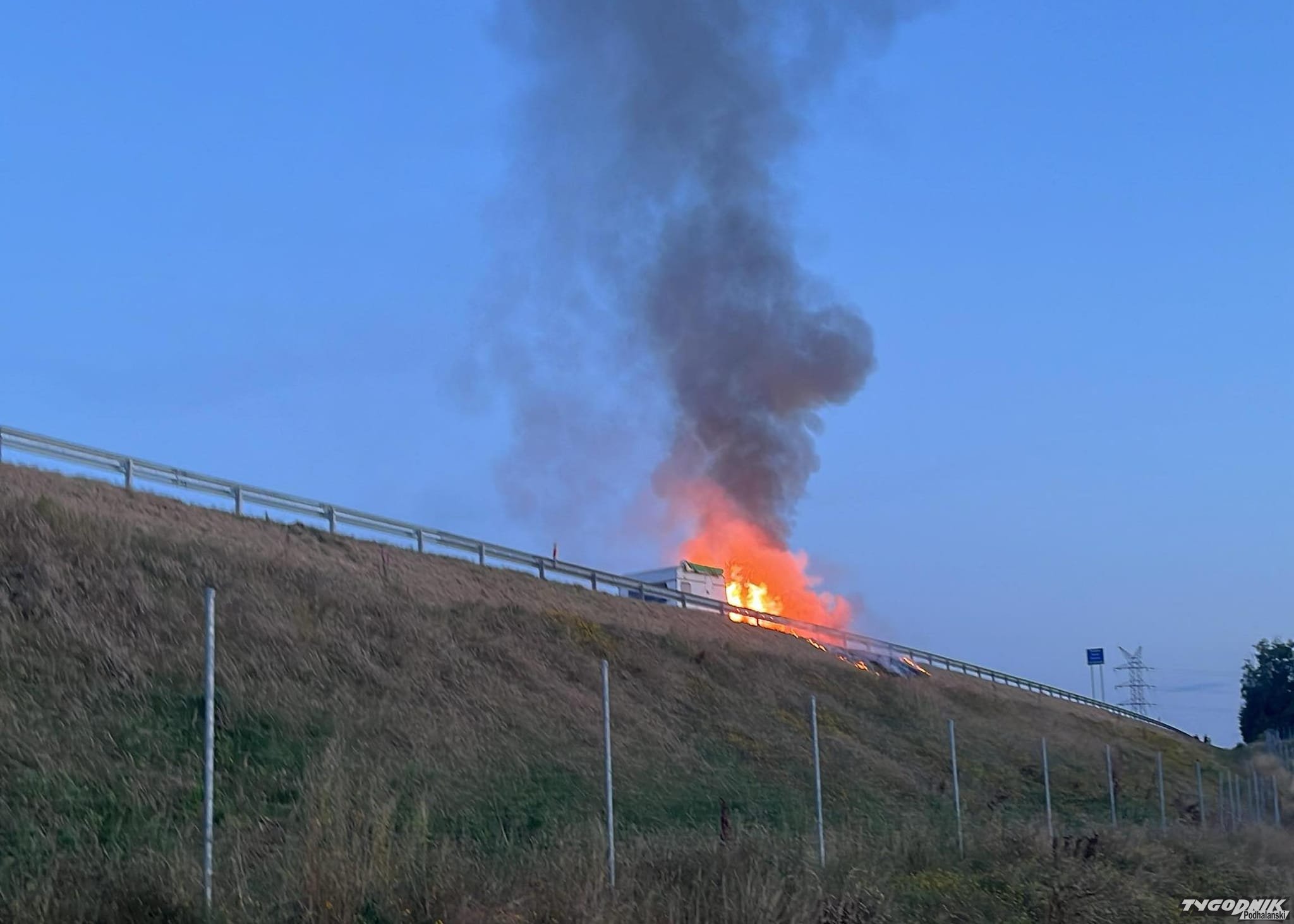 Samochód stanął w płomieniach niedaleko wjazdu do tunelu.