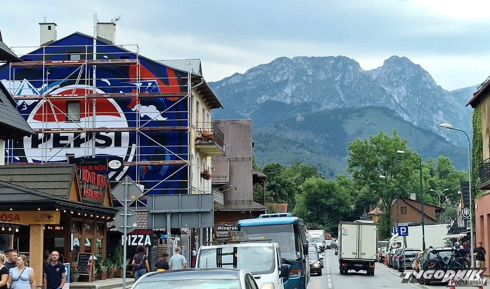 Na ul. Nowotarskiej w Zakopanem, gdzie wielu turystów robi zdjęcia Giewontu powstaje taki szpecący okolicę mural.