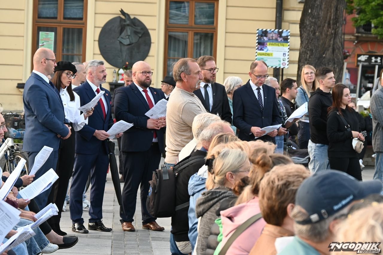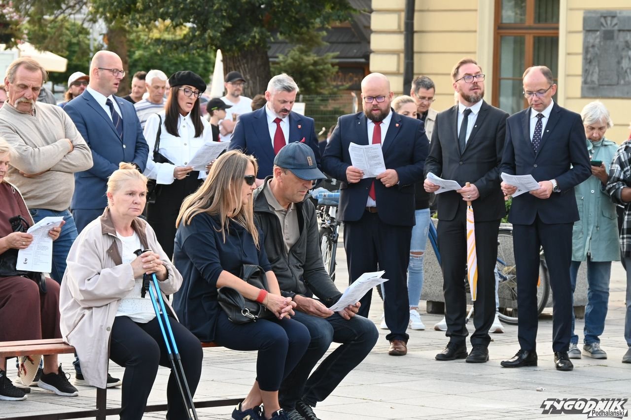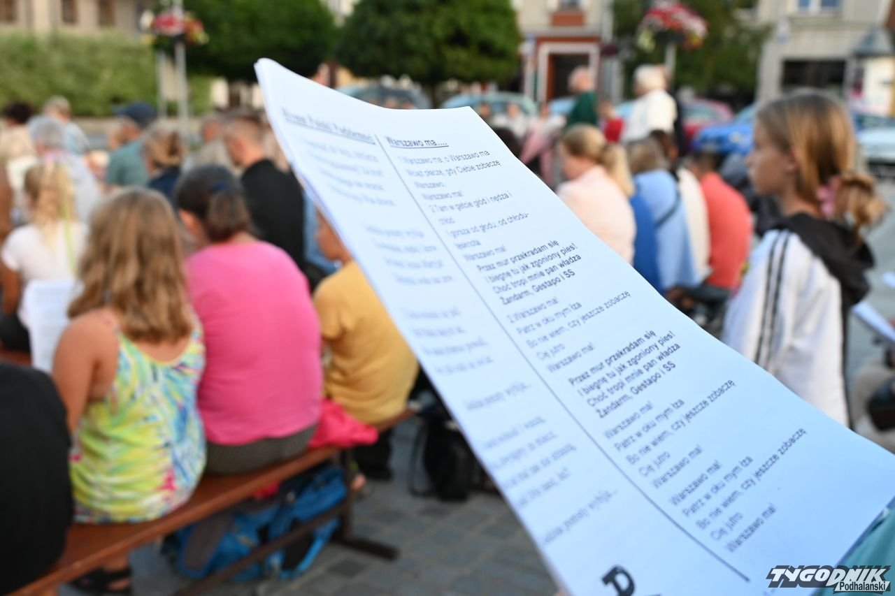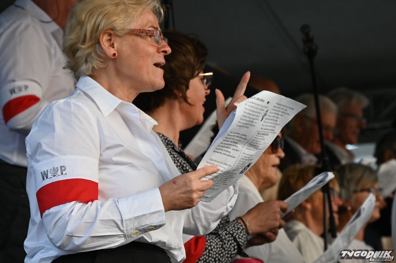 Na plenerową scenę rozstawioną na nowotarskim Rynku weszli członkowie dwóch chórów: Echa Gorczańskiego i Miejskiego Chóru Gorce, by wystąpić przed całkiem liczną publicznością z koncertem pt. "Nowotarżanie śpiewają (nie)zakazane piosenki". Ale muzyczny przekaz szedł nie tylko ze sceny, wszak wszyscy chętni dostali specjalne śpiewniki, gdzie były m.in. słowa "Warszawianki".
