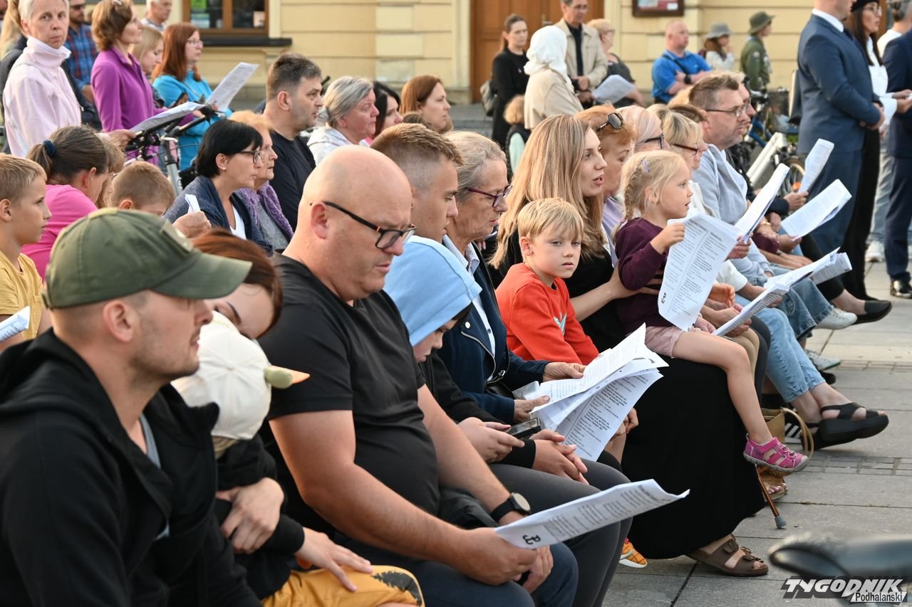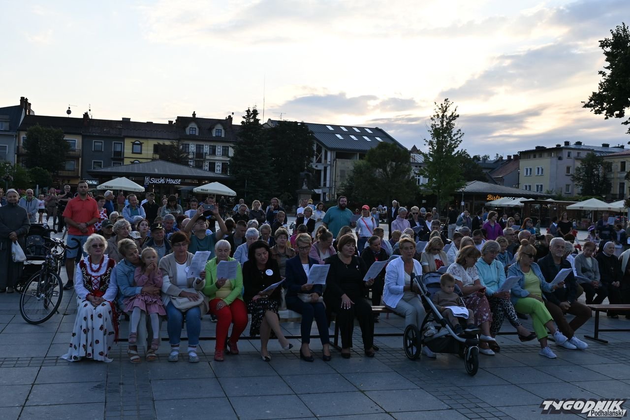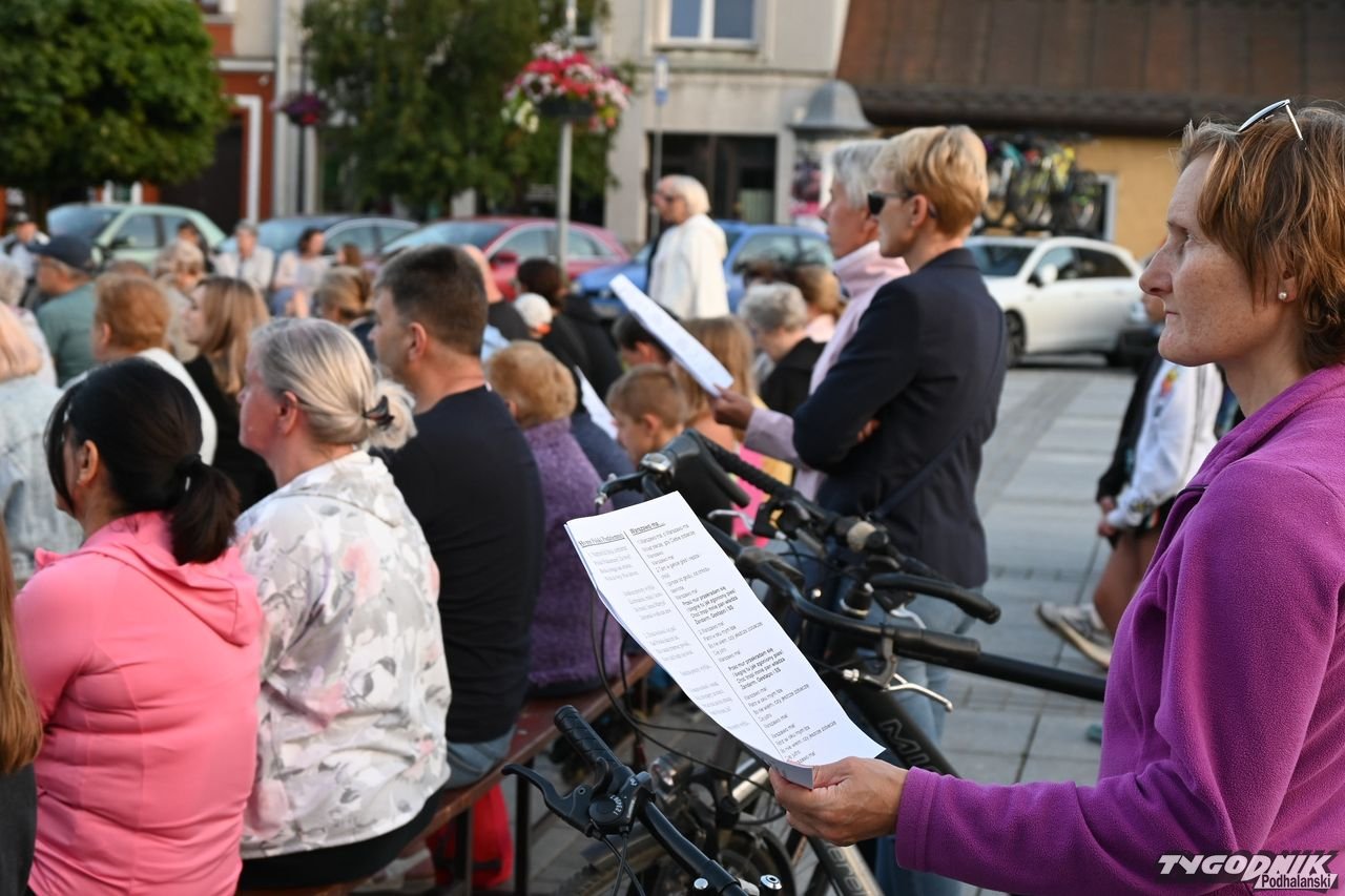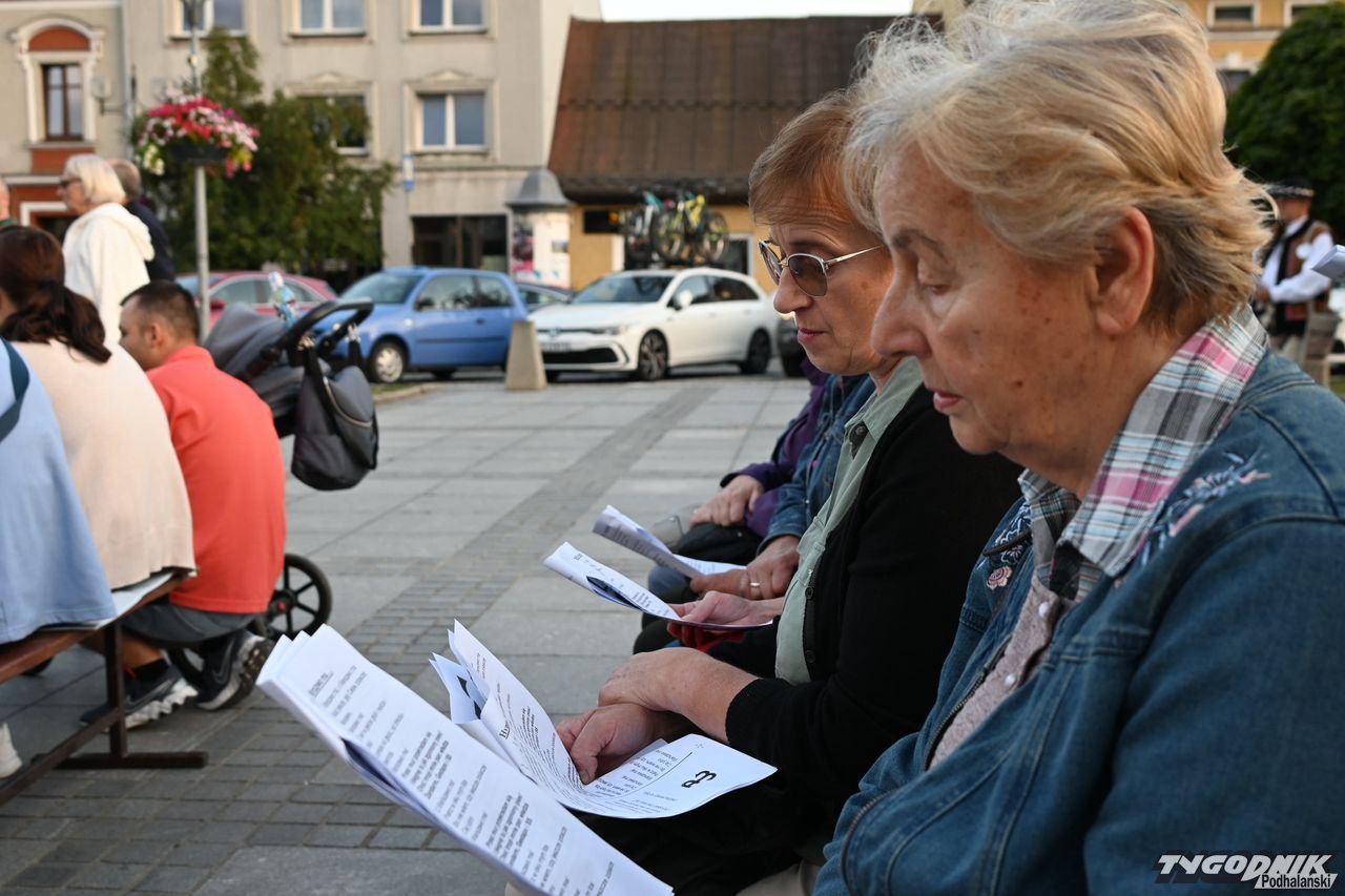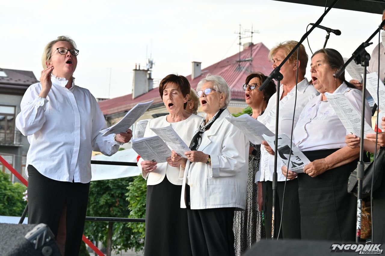 Na plenerową scenę rozstawioną na nowotarskim Rynku weszli członkowie dwóch chórów: Echa Gorczańskiego i Miejskiego Chóru Gorce, by wystąpić przed całkiem liczną publicznością z koncertem pt. "Nowotarżanie śpiewają (nie)zakazane piosenki". Ale muzyczny przekaz szedł nie tylko ze sceny, wszak wszyscy chętni dostali specjalne śpiewniki, gdzie były m.in. słowa "Warszawianki".