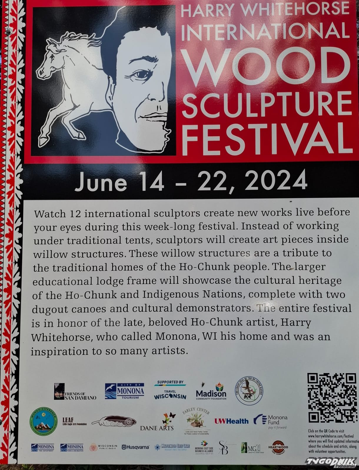 Festiwal upamiętniający postać Harry Whitehorse, nieżyjącego już rzeźbiarza, Indianina Ho-Chunk, odbył się po raz pierwszy. Wzięło w nim udział jedenastu rzeźbiarzy z: USA, Peru, Indii, Niemiec, Szwajcarii, Meksyku, Ghany i jedyna reprezentantka Polski - Lidia Rosińska. Tematem prac była natura szeroko pojęta. Artyści pracowali przeszło tydzień (14-22 VI), w urokliwym parku w San Damiano, w Monona. Każdy z rzeźbiarzy miał swój namiot nawiązujący wyglądem do indiańskiego tipi. Osoby odwiedzające park mogły obserwować artystów przy pracy.