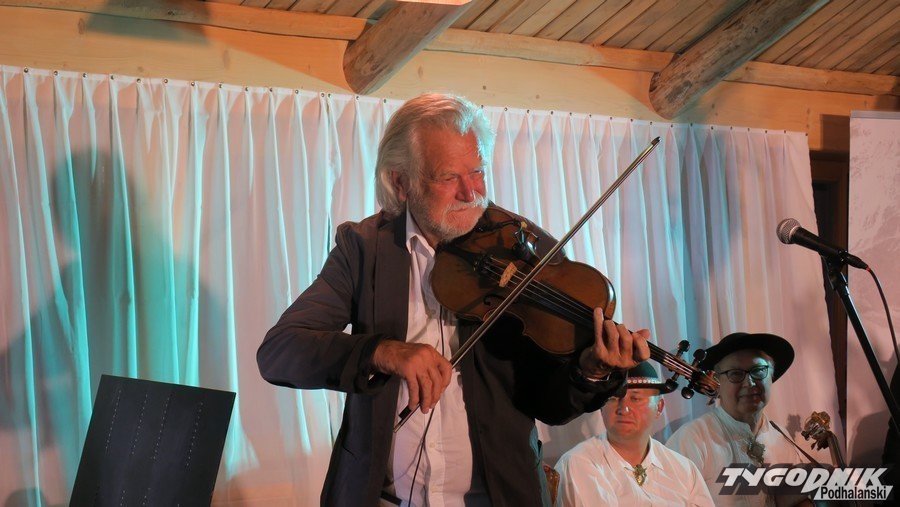 Legendarny skrzypek, Zbigniew Paleta jest dziś z nami z Andrzejem Zielińskim zagra "Cała jesteś w skowronkach", a z Andrzejem Zaryckim "Skrzypka Hercowicza" - zapraszał na scenę kolejnego wykonawcę Witold Wnuk. Jako że Zbigniew Paleta w Meksyku przez ćwierć wieku grał w filharmonii Mexico City, wybrzmiała też meksykańska nuta. Prowadzący koncert przypomniał, że Ewy Demarczyk od kilku lat nie ma już wśród nas. "Czarny Anioł" Piwnicy zmarł w 2020 roku. - Przyjeżdżała tu na Podhale, bawiliśmy się na wspaniałych balach u Bukowskiego. "Skrzypek Hercowicz" to dzieło znakomitego kompozytora, górala, twórcy wielu piwnicznych utworów Andrzeja Zaryckiego - dodał prowadzący koncert.