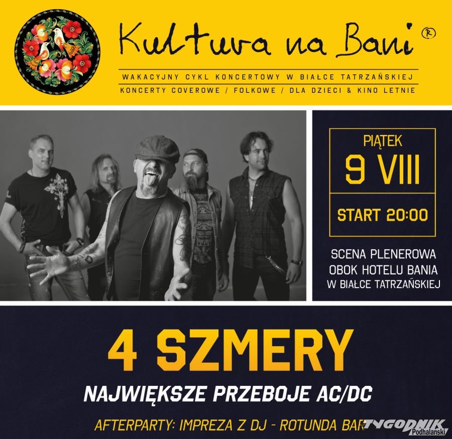 Wprawdzie grupa nie wystąpi w Białce Tatrzańskiej, ale za to w piątek 9.08 w ramach wakacyjnego cyklu "Kultura na Bani" koncert zagra grupa 4Szmery.