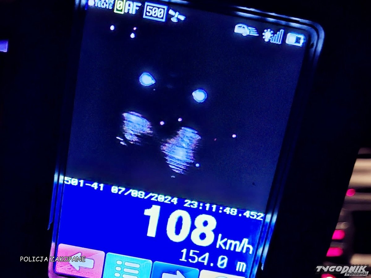 Pędził przez Zakopane z prędkością 108 km na godz. Prawo jazdy miał przez miesiąc