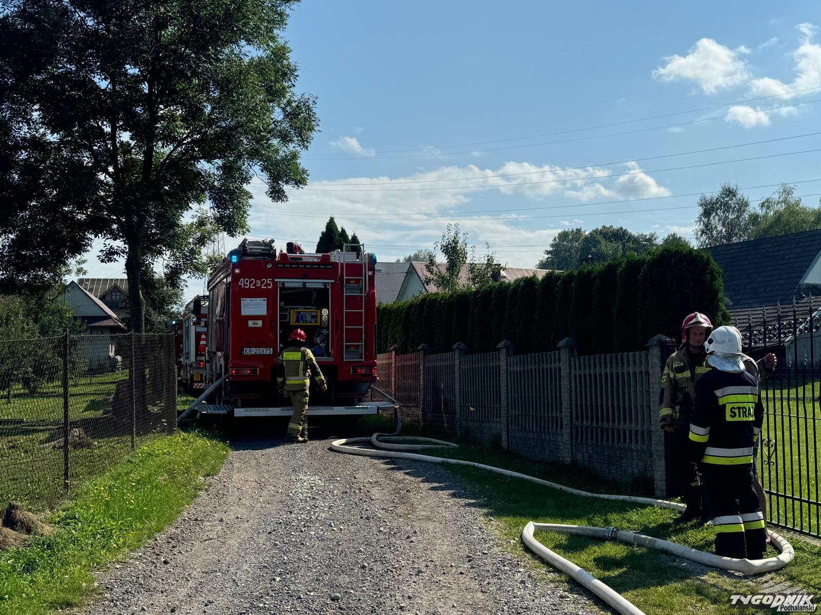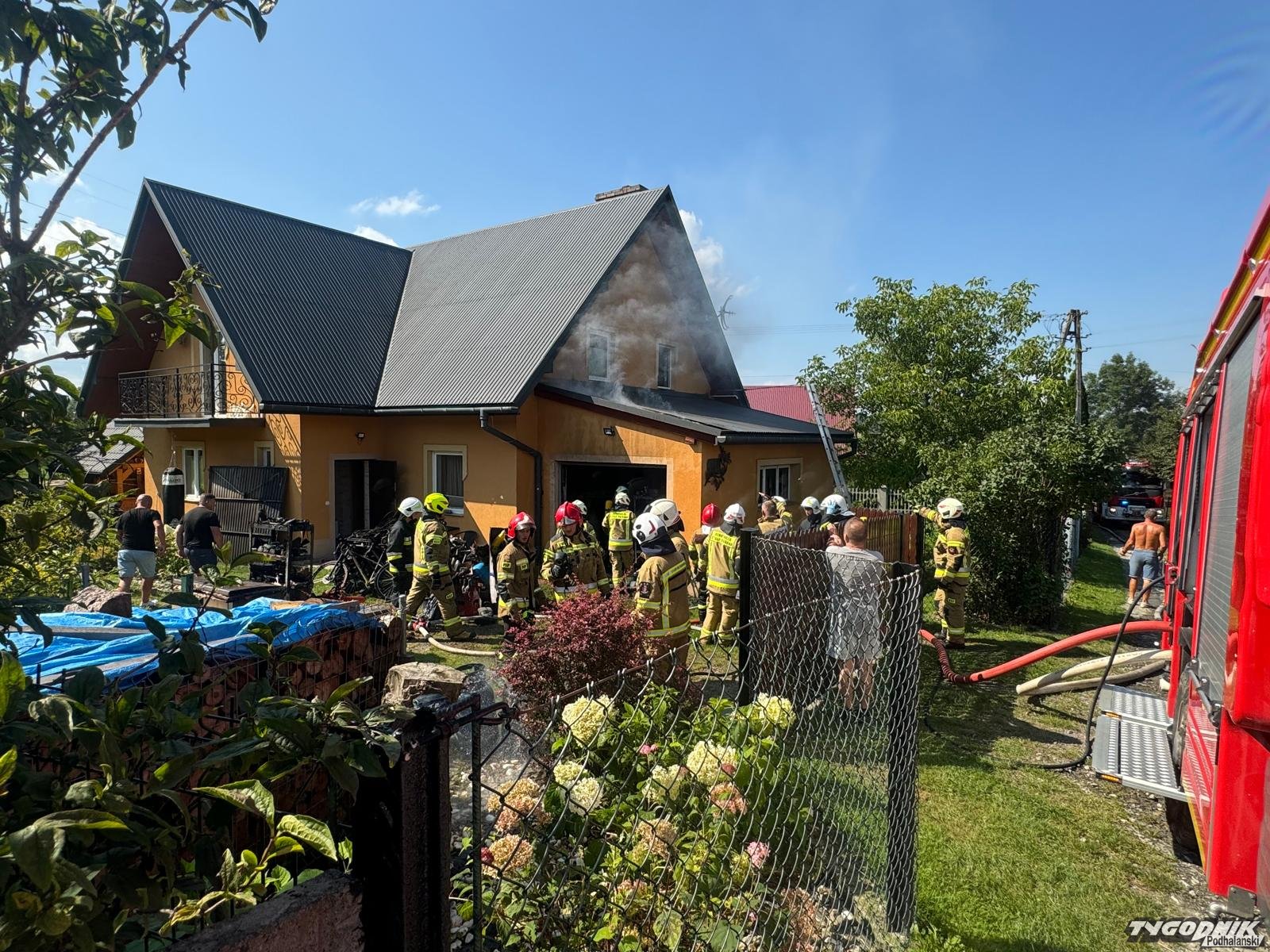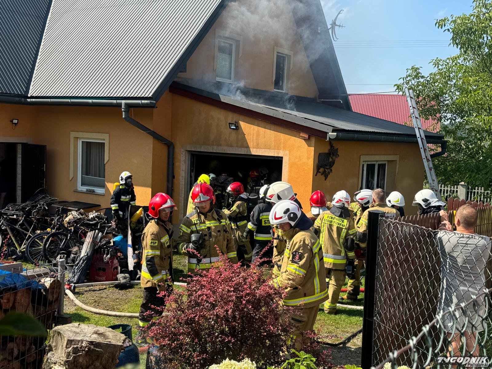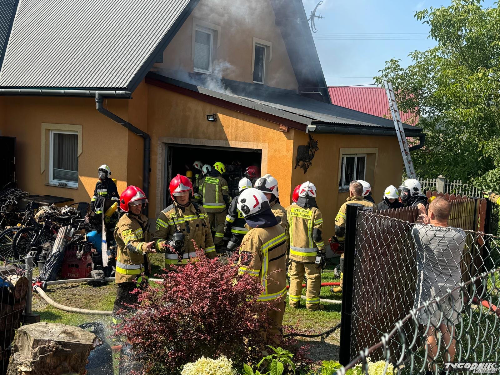 Pożar wybuchł z w pomieszczeniu dobudowanym do domu mieszkalnego. Płomienie opanowały wnętrze garażu i zagroziły części mieszkalnej. Strażacy zdołali błyskawicznie opanować pożar i zapobiec rozprzestrzenianiu się płomieni. Na miejsce dotarły zastępy z Rabczańskiej Jednostki Ratowniczo-Gaśniczej a także wozy OSP z terenu gminy Raba Wyżna i z pobliskich: Spytkowice i Chabówki. Na miejscu trwa dogaszanie.