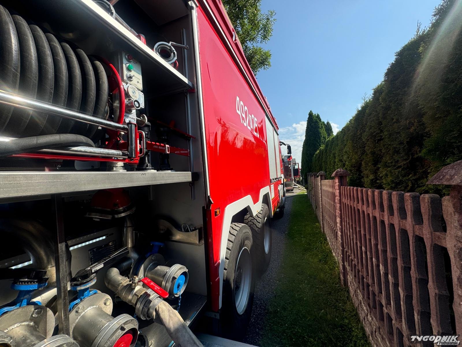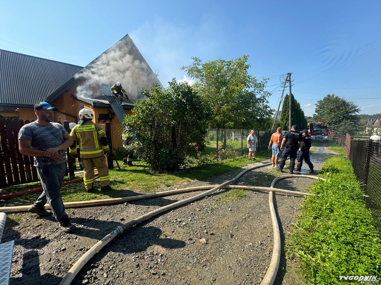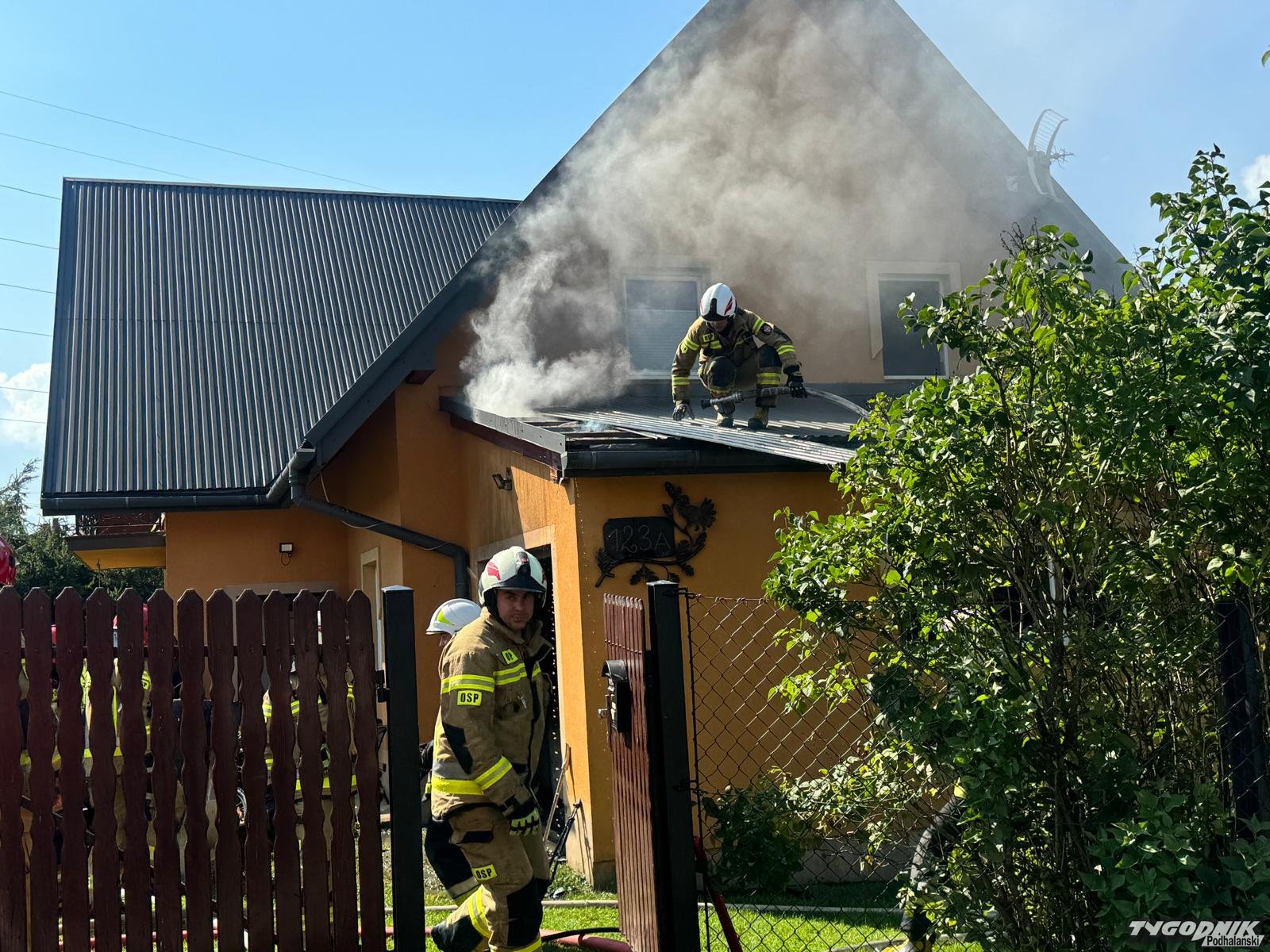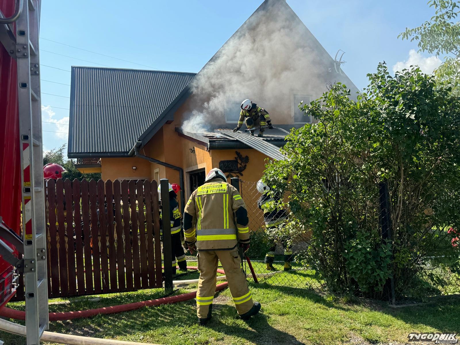 Pożar wybuchł z w pomieszczeniu dobudowanym do domu mieszkalnego. Płomienie opanowały wnętrze garażu i zagroziły części mieszkalnej. Strażacy zdołali błyskawicznie opanować pożar i zapobiec rozprzestrzenianiu się płomieni. Na miejsce dotarły zastępy z Rabczańskiej Jednostki Ratowniczo-Gaśniczej a także wozy OSP z terenu gminy Raba Wyżna i z pobliskich: Spytkowice i Chabówki. Na miejscu trwa dogaszanie.
