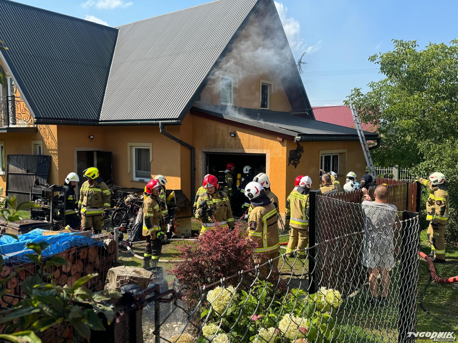 W płomieniach stanął garaż połączony z domem mieszkalnym.