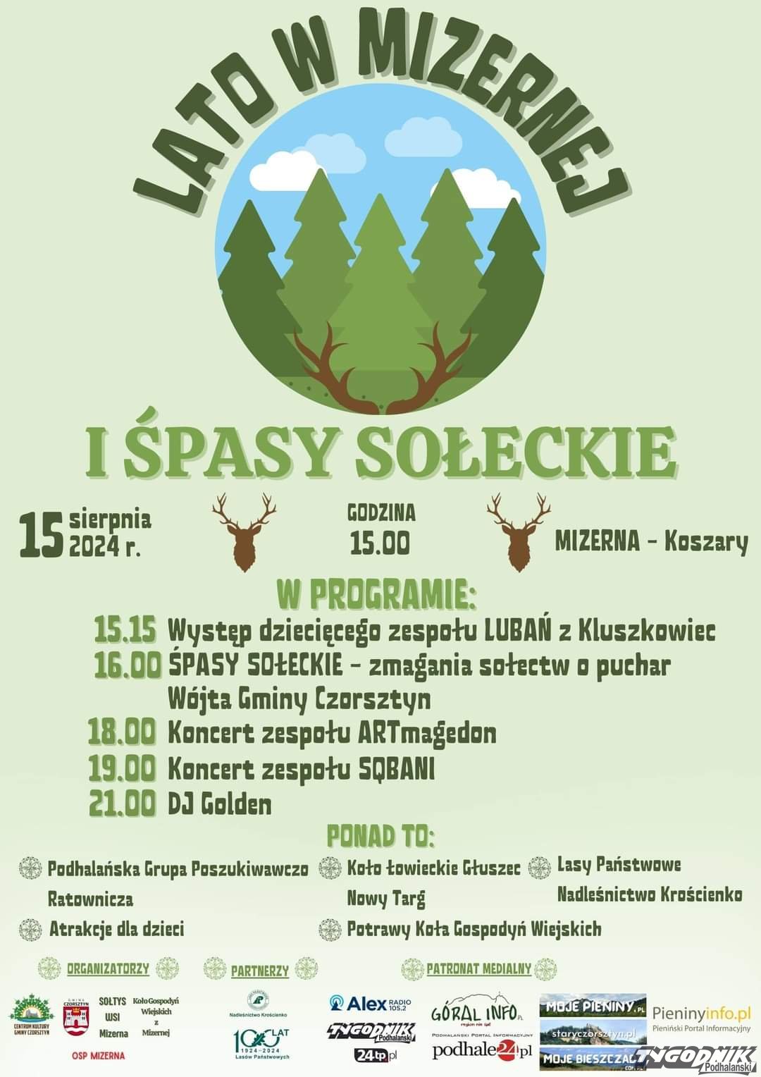 Głównym punktem będą I Śpasy Sołeckie - zmagania sołectw o puchar Wójta Gminy Czorsztyn. Na scenie wystąpią: Dziecięcy zespół Lubań z Kluszkowie, Zespół ARTmagedon, Zespół Sqbaniw. Będą atrakcje dla dzieci, degustacja potraw regionalnych. Swój udział zapowiedziała Podhalańska Grupa Poszukiwawczo Ratownicza, Koło Łowieckie Głuszec Nowy Targ, Lasy Państwowe Nadleśnictwo Krościenko. Na koniec w programie jest zabawa taneczna, którą poprowadzi DJ Golden. Początek - godz. 15