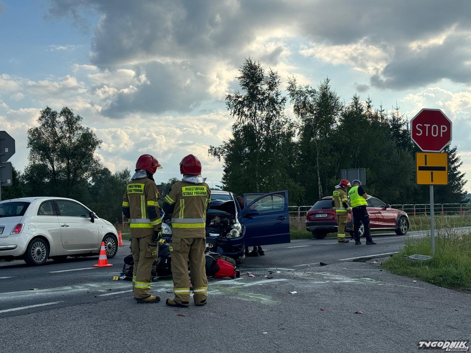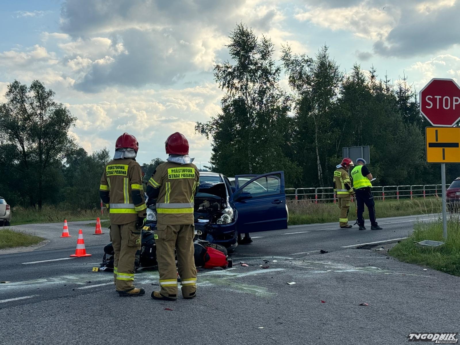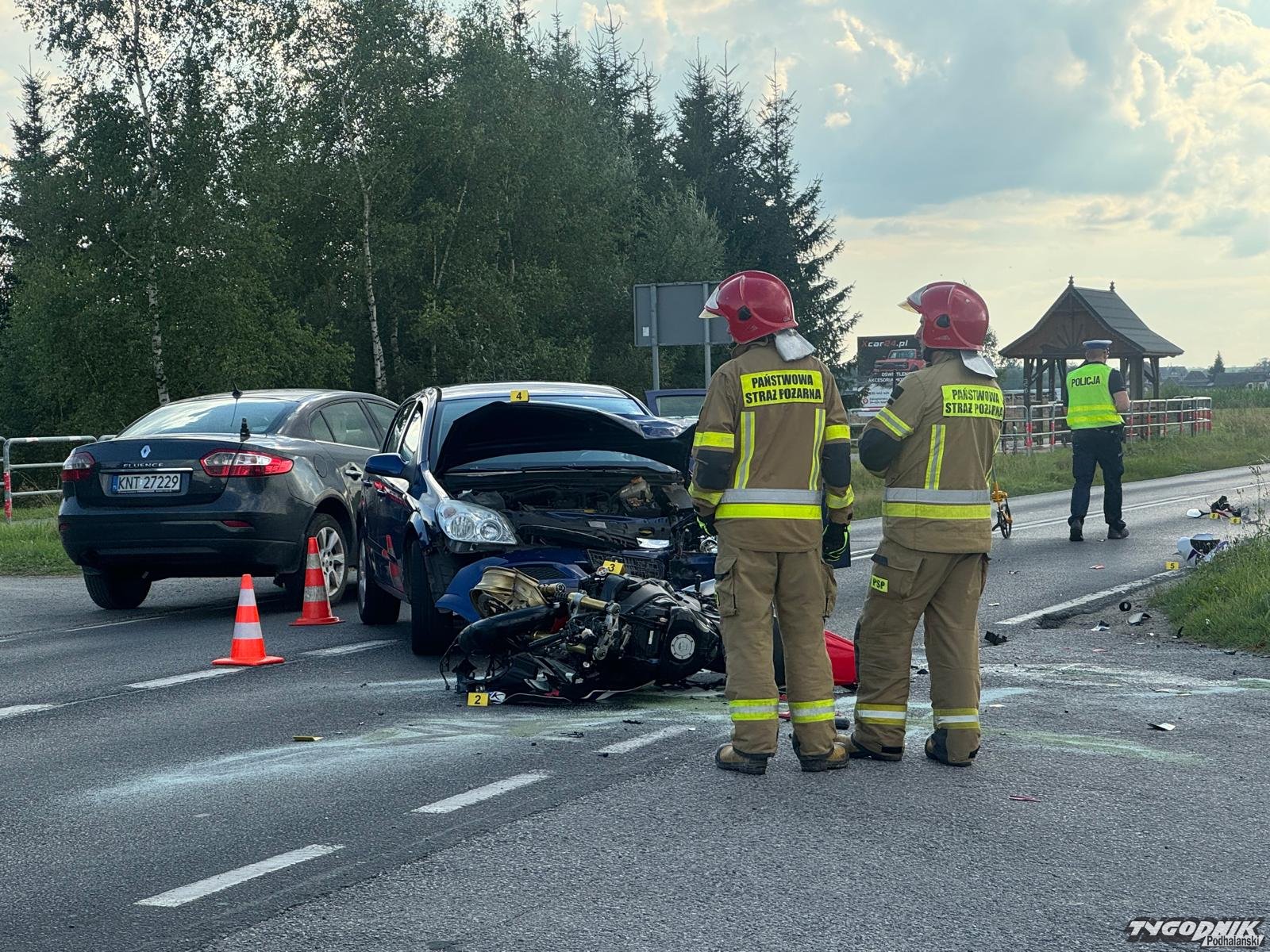 W Ludźmierzu samochód osobowy zderzył się z motocyklem.