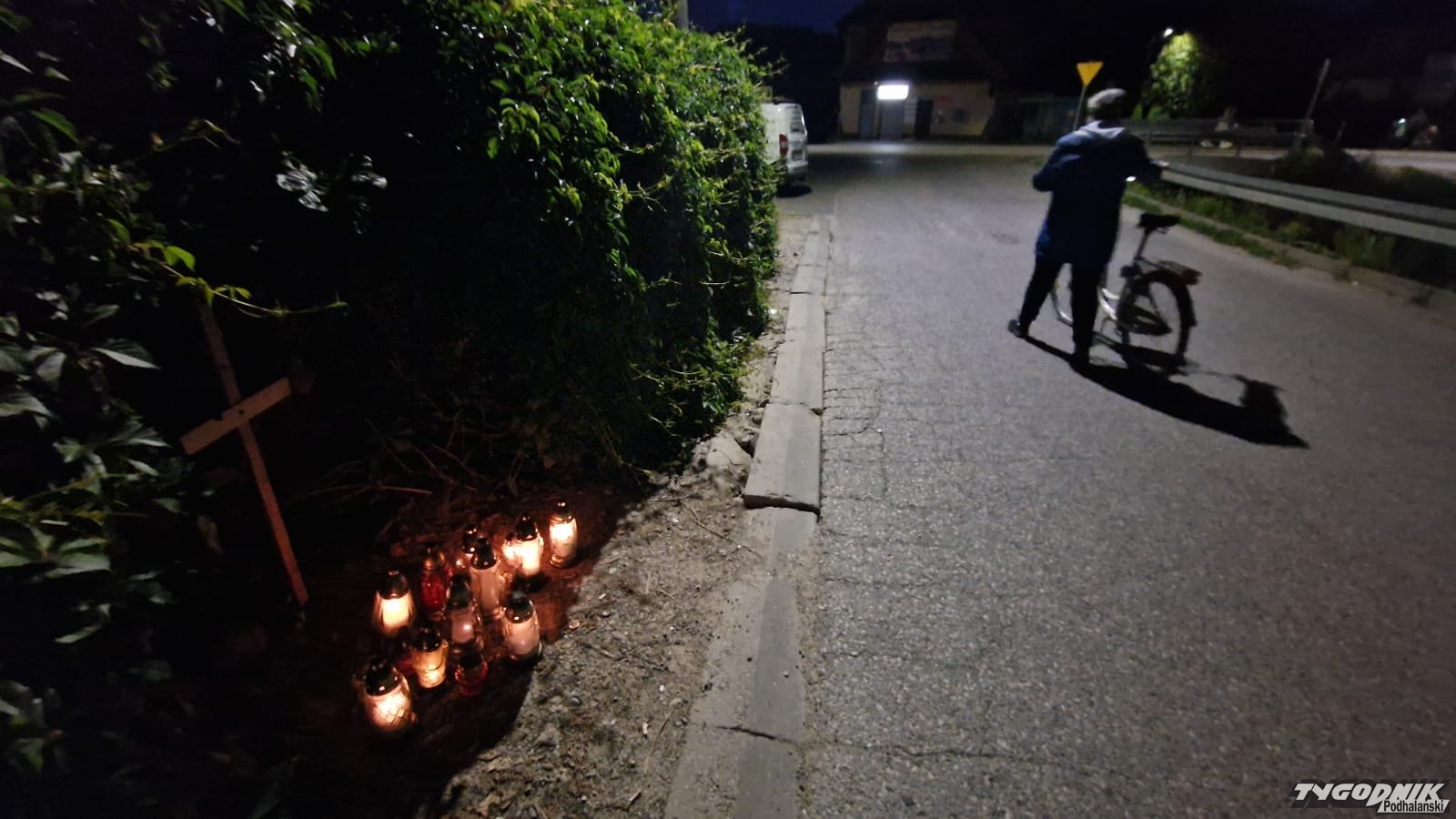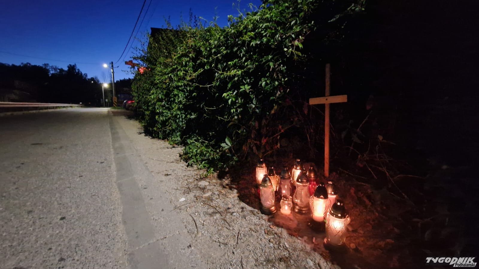 W Białym Dunajcu, w miejscu, gdzie znaleziono nieprzytomnego 25-letniego strażaka, który później zmarł w szpitalu, postawiono symboliczny krzyż.