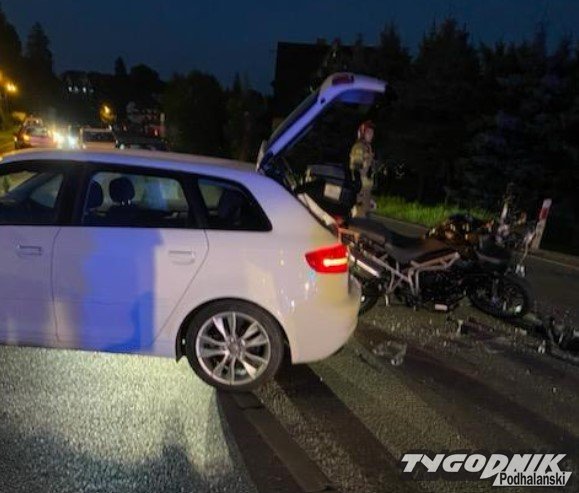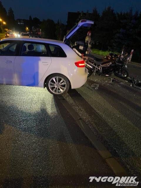Na ulicy Sądeckiej zderzyły się: motocykl i samochód osobowy.