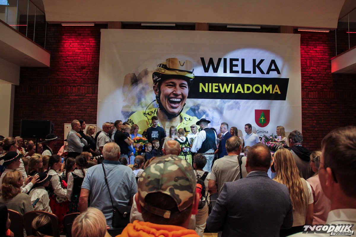 Katarzyna Niewiadoma, zwyciężczyni prestiżowego wyścigu kolarskiego Tour de France, wraz z mężem Taylor Phinneyem, przyjechali do jej rodzinnej miejscowości. W poniedziałkowy wieczór mistrzyni powitana została niczym prawdziwa bohaterka. Był kołacz na powitanie, góralska kapela i dwa zespoiły, nie brakło kolarzy, którzy podjechali na swych rowerach. W rolę gospodarza, ale i konferansjera wcielił się wójt Tadeusz Królczyk. Słów podziwu nie szczędzili dla kolarki jej pierwsi trenerzy Józef Olchawa i Zbigniew Klęk. Były śpiewy, Kasie nawet zatańczyła wraz z zespołem Ochotni, w którym niegdyś sama występowała. A na koniec w krótkim wywiadzie przyznała, że czuje się zmęczona, ale i szczęśliwa także tak okazałym powitaniem.