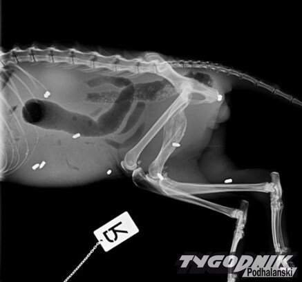 Jego stan się nie polepszał. Następnego dnia zawiozła go więc do Gerarda Wolskiego, a ten do Lecznicy Weterynaryjnej Luxvet24 w Krakowie. Tam po prześwietleniu okazało się, że ma w różnych częściach ciała aż 15 kul. - Widać tam dwa rodzaje śrutów. Jedne ze zwykłej wiatrówki, drugie nie wiadomo dokładnie z czego. Może to być jakaś broń pneumatyczna lub czarnoprochowa. To broń palna, na którą nie trzeba mieć zezwolenia - podkreśla Gerard Wolski.