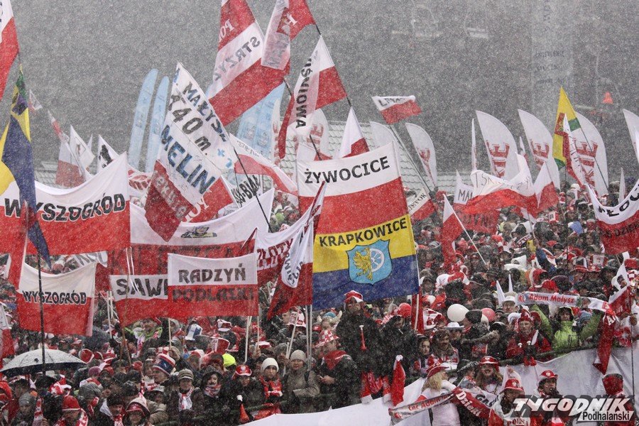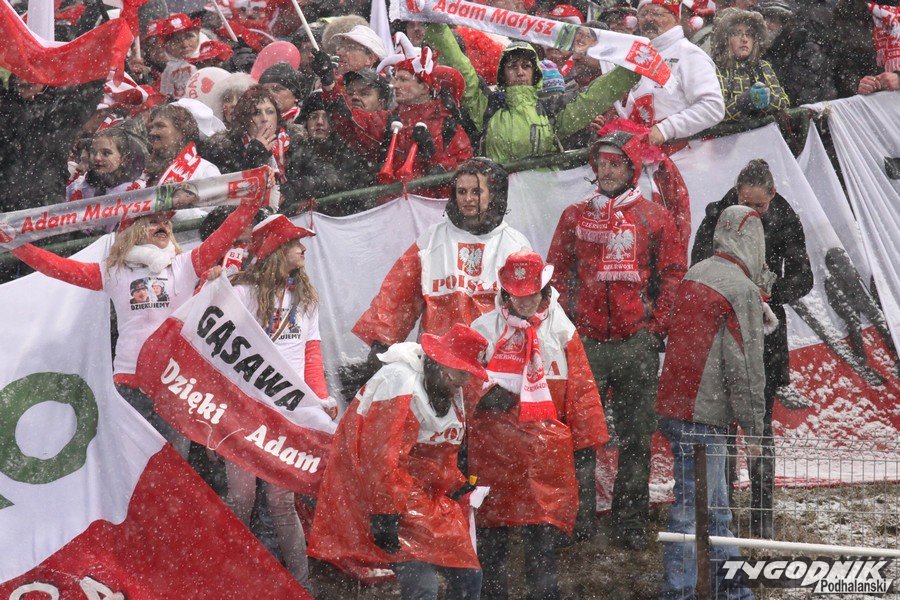 Niestety Adama Małysza żegnały też mocne opady śniegu. Prezydent Komorowski po kilkunastu minutach schował się w pawilonie. Najlepsi skoczkowie świata początkowo tylko zjechali spod progu Wielkiej Krokwi.