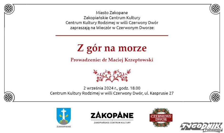 W trakcie o ludziach morza pochodzących z gór oraz o swoich wyprawach naukowo-badawczych opowie dr Maciej Krzeptowski – absolwent studiów przyrodniczych na Uniwersytecie im. Adama Mickiewicza w Poznaniu, były pracownik Muzeum Narodowego w Szczecinie, biolog morza, muzealnik, żeglarz i autor książek.