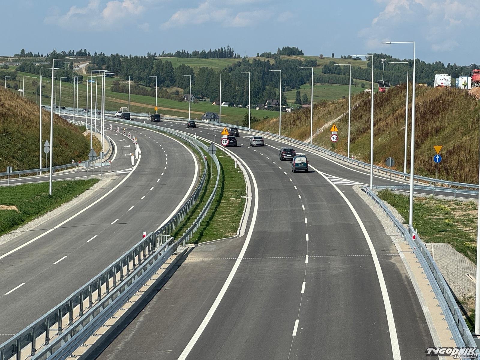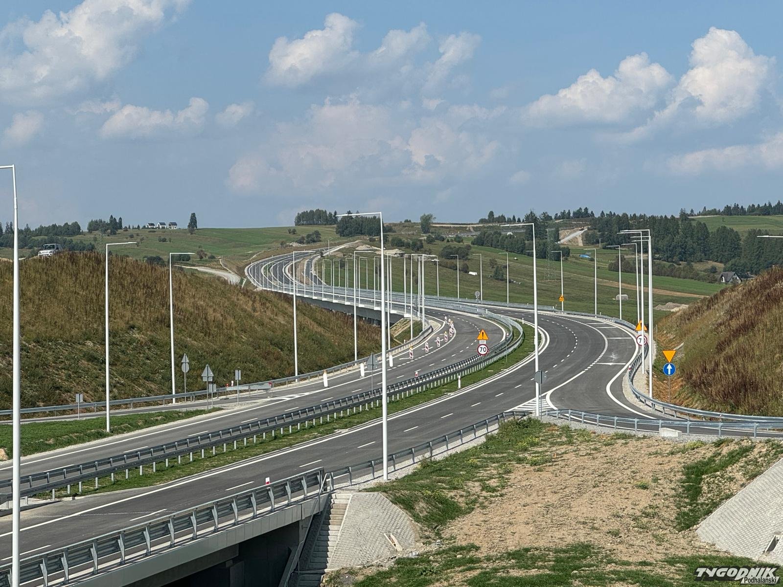 Nowy, 16-kilometrowy odcinek drogi krajowej został oddany do użytku dziś wczesnym popołudniem. Obyło się bez przecinania wstęgi i oficjalnej pompy. Po prostu drogowcy zlikwidowali utworzone na czas budowy bajpasy a kierowcy eskortowani przez policyjne radiowozy ruszyli na nową trasę. Kierujący głośno okazywali zadowolenie, często używając klaksonów na pierwszy metrach nowego odcinka. Mniej zadowoleni byli mieszkańcy nowotarskich osiedli położonych przy nowej zakopiance, którzy obawiają się uciążliwości dźwiękowych nowej drogi i próbują wymusić na Generalnej Dyrekcji Dróg Krajowych i Autostrad montaż ekranów dźwiękochłonnych. Protestujący pojawili się w rejonie węzła drogowego Klikuszowa, gdzie odbywało się spotkanie przedstawicieli GDDKiA z dziennikarzami i tam rozłożyli bannery, z swoim głównym żądaniem.