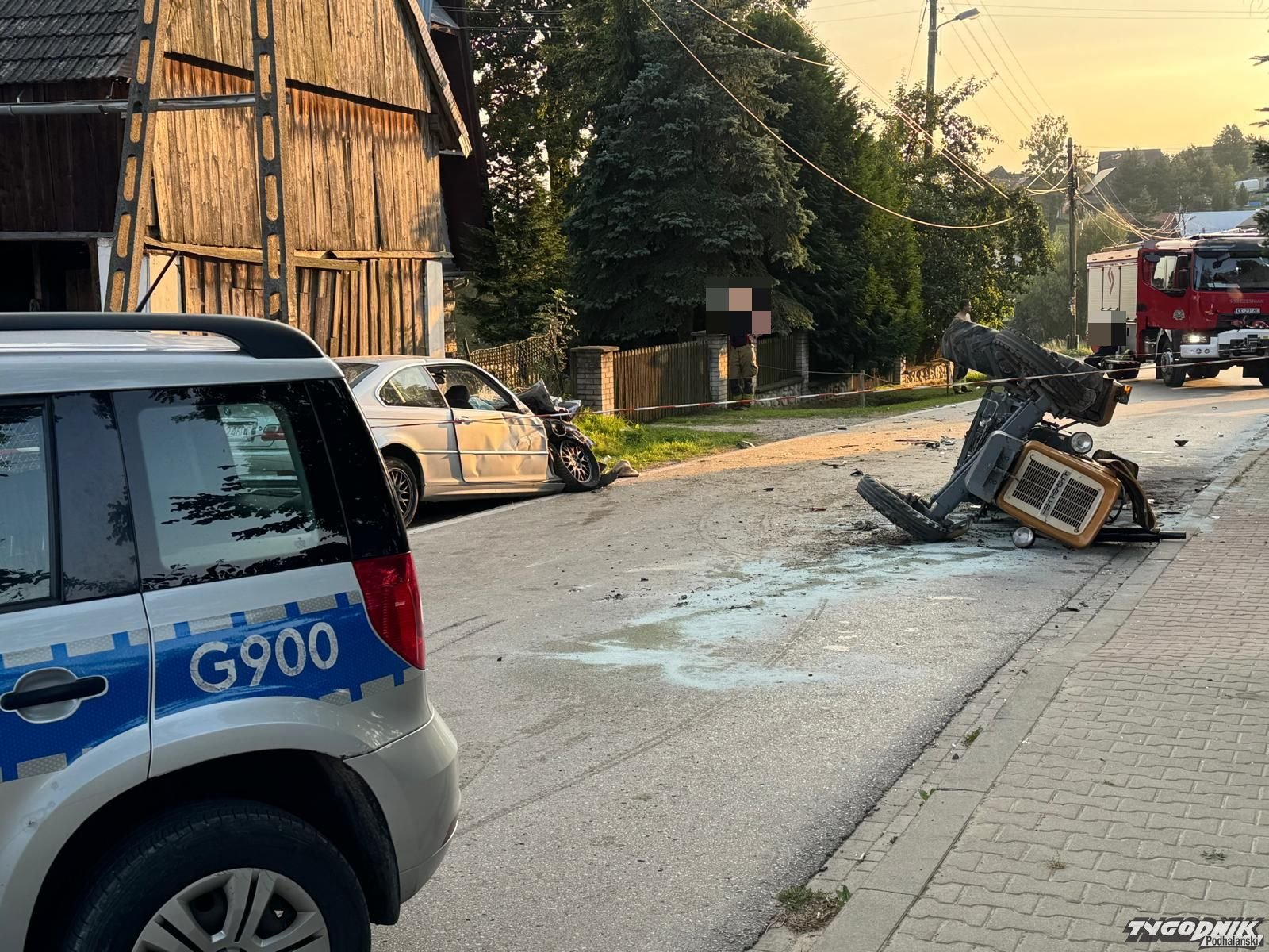 Na głównej drodze zderzyły się: ciągnik rolniczy i osobowe BMW.