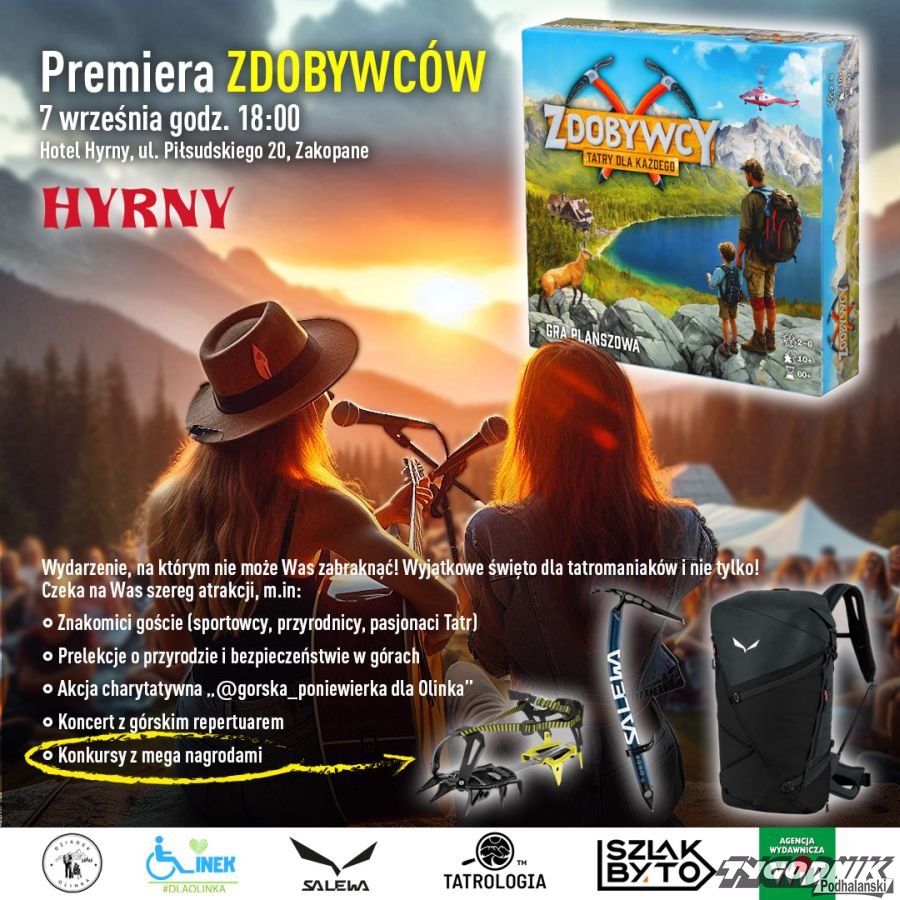 W sobotę 7.09 o godz. 18 w Hotelu Hyrny w Zakopanem (ul. Piłsudskiego 20) odbędzie się premiera gry "ZDOBYWCY. Tatry dla każdego", w której udział weźmie wielu znakomitych gości związanych z górami.