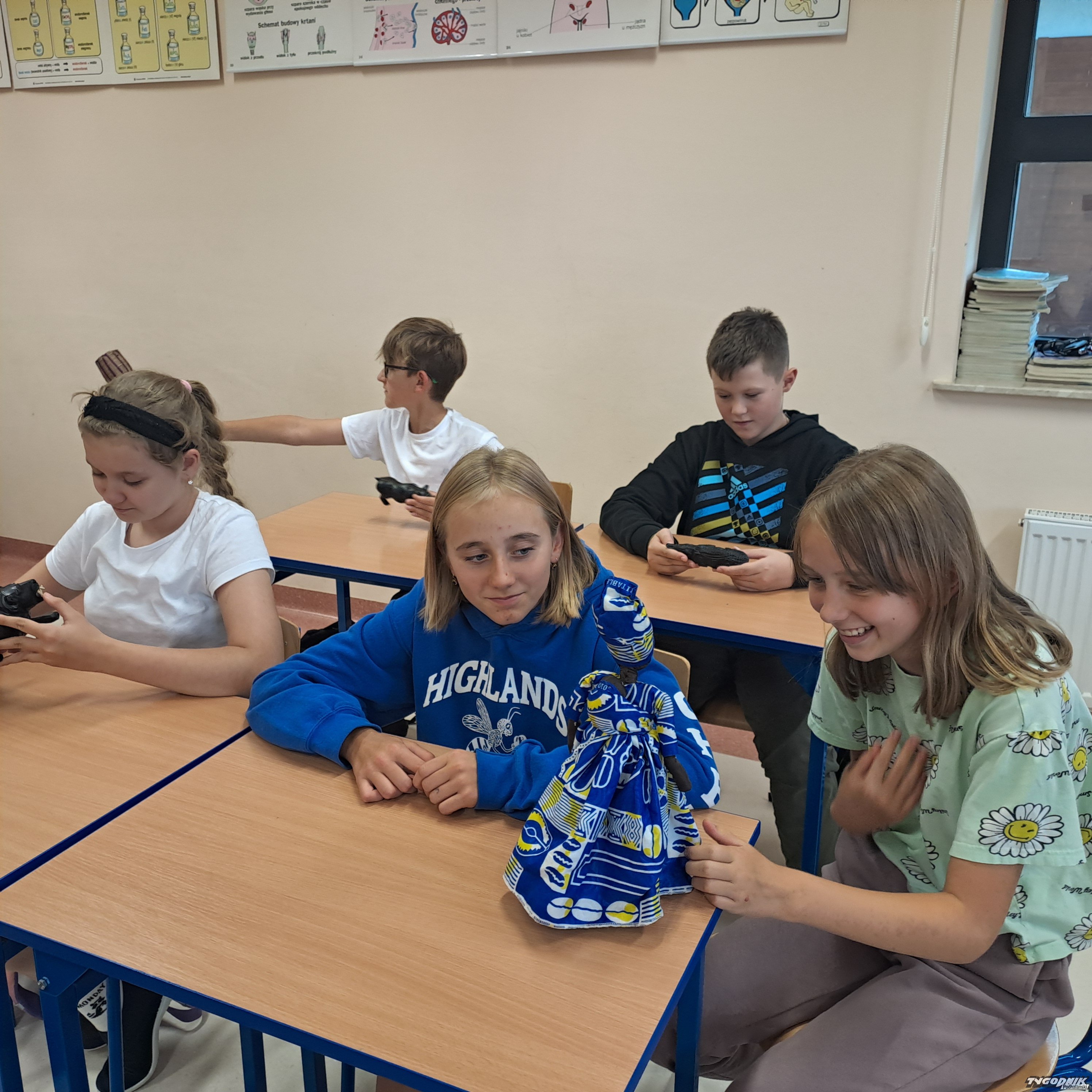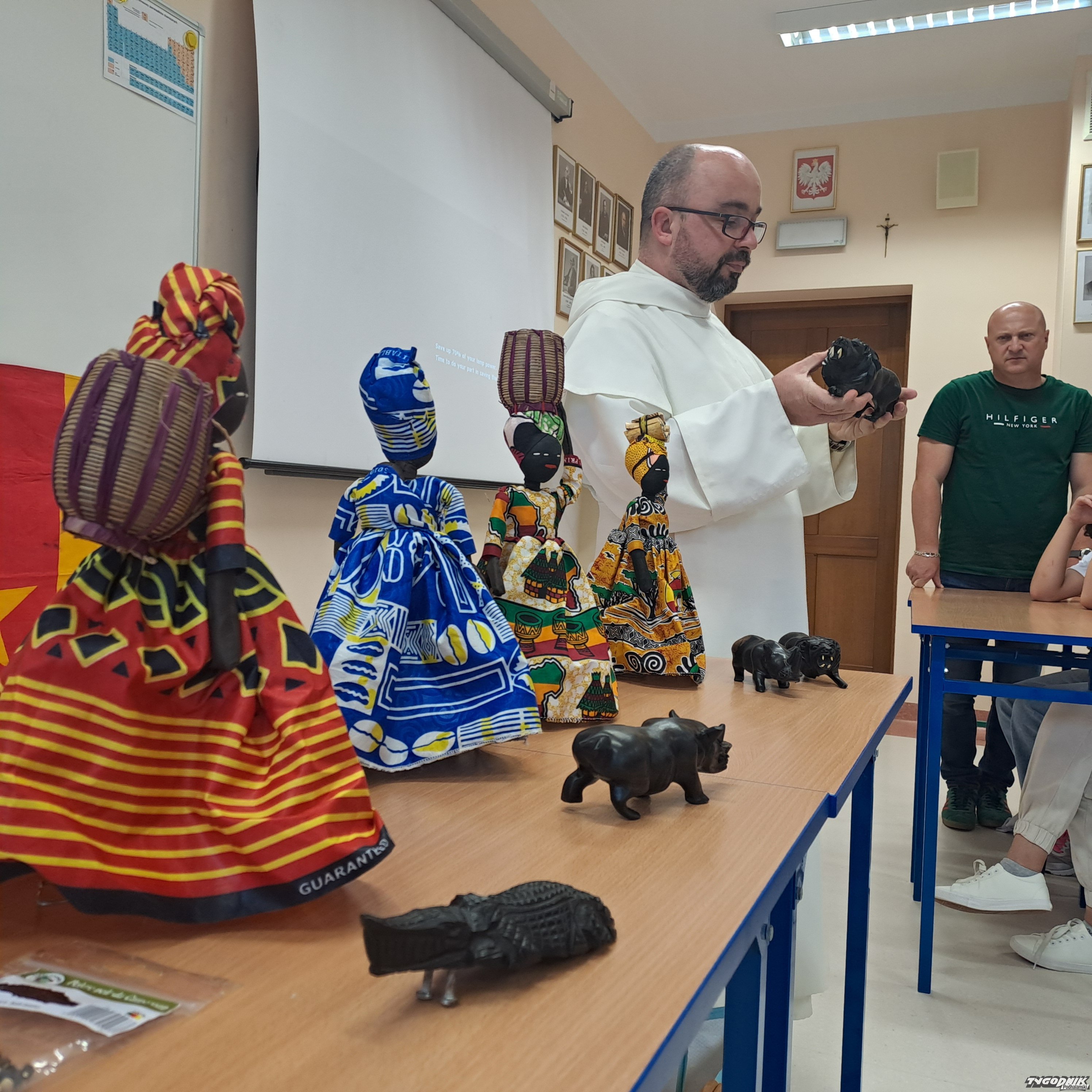 Podczas spotkania górale mogli zobaczyć miniaturki zwierząt, które żyją w tym afrykańskim kraju, zostały one zrobione z drzewa hebanowego. Jedną z nich misjonarz przekazał w prezencie dyrektorowi szkoły Krzysztofowi Kuli i katechetce Joannie Łacek.