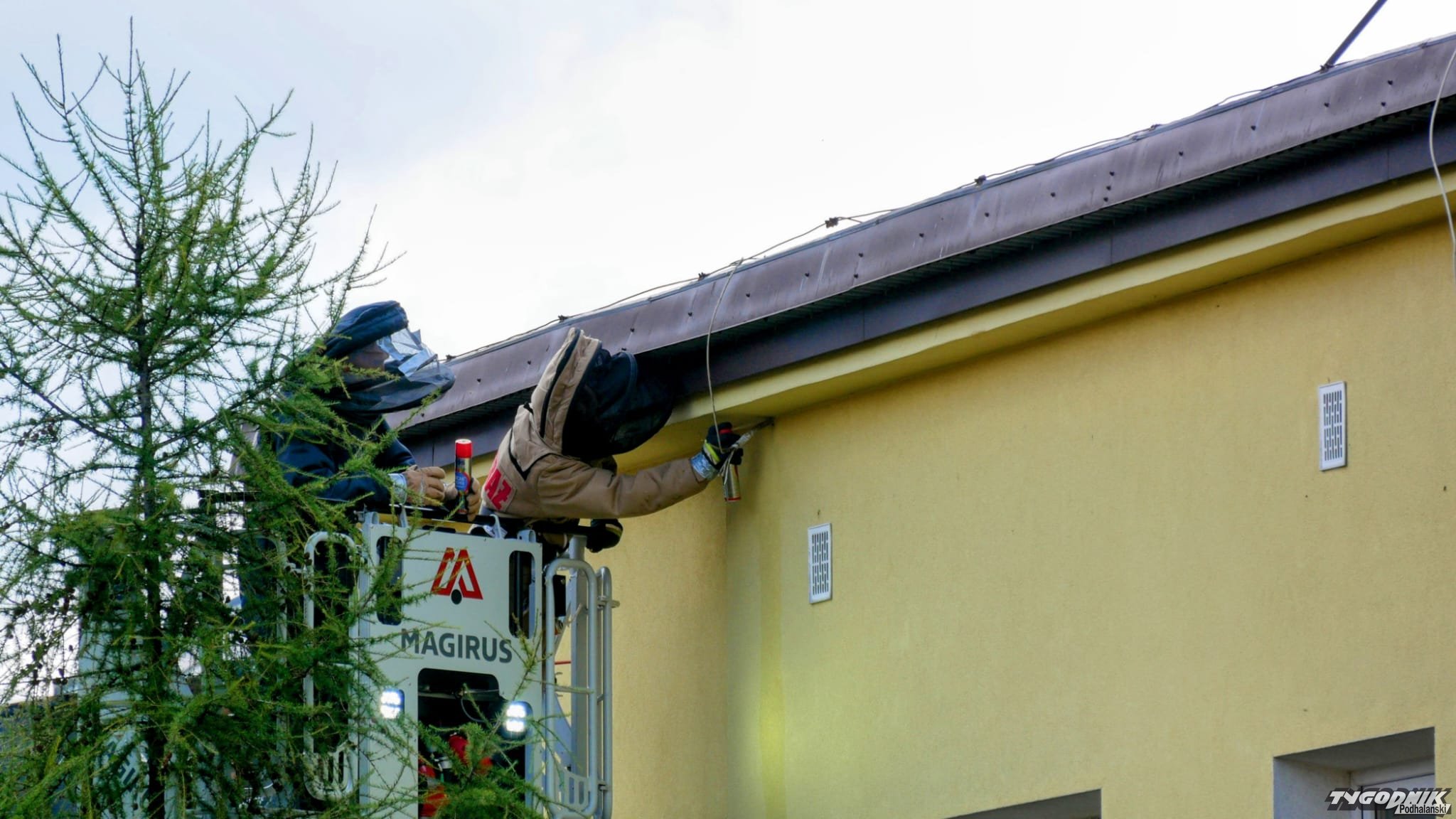 Strażacy przyjechali na ul. Weteranów Wojny, aby usunąć gniazdo szerszeni.
