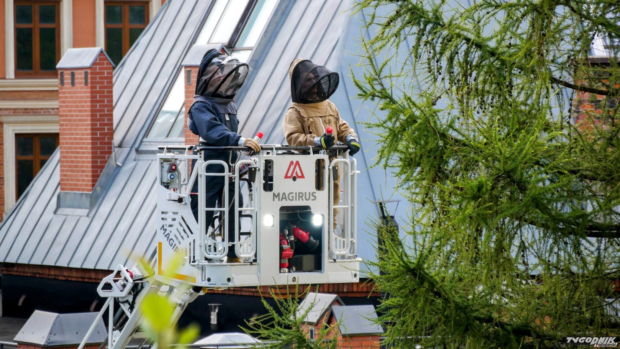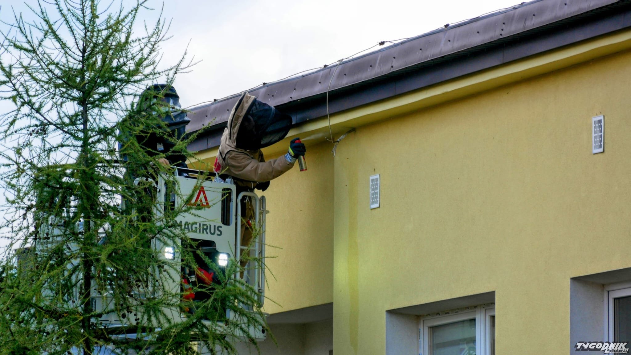 Strażacy usuwają gniazdo szerszeni na bloku w Zakopanem