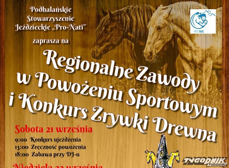Podhalańskie Stowarzyszenie Jeździeckie "Pro-Nati" zaprasza na Regionalne Zawody w Powożeniu Sportowym i Konkurs Zrywki Drewna.