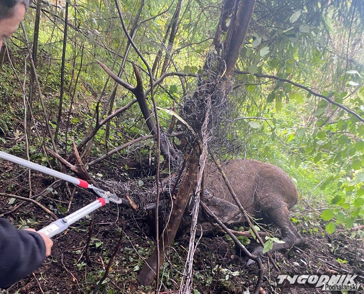 W Zakopanem funkcjonariusze Straży Miejskiej uratowali jelenia, który zaplątał się w ogrodzenie.