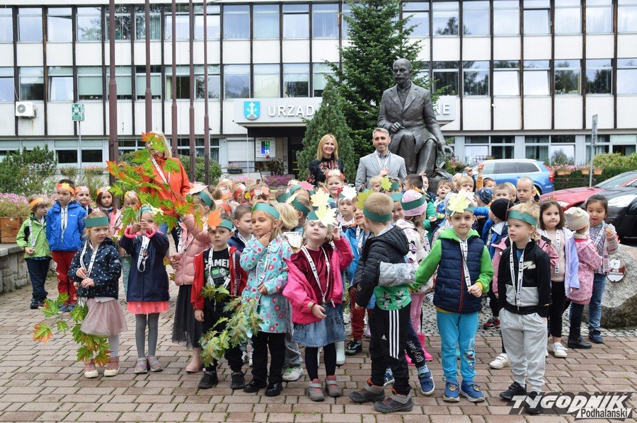 Co robiły przedszkolaki z Kubusia Puchatego przed urzędem miasta?