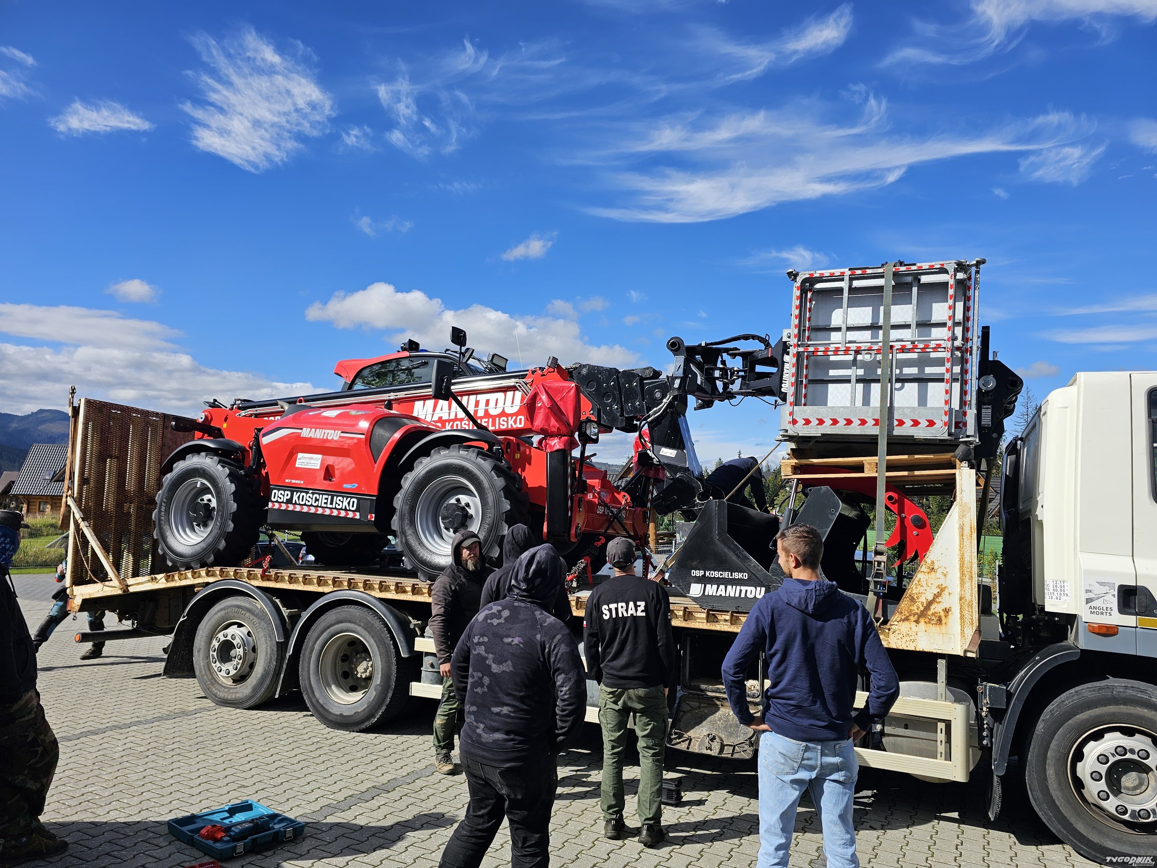 Do działań została zadysponowana ładowarka teleskopowa Manitou z osprzętem, samochód GLM Ford Ranger oraz operatorzy sprzętu.