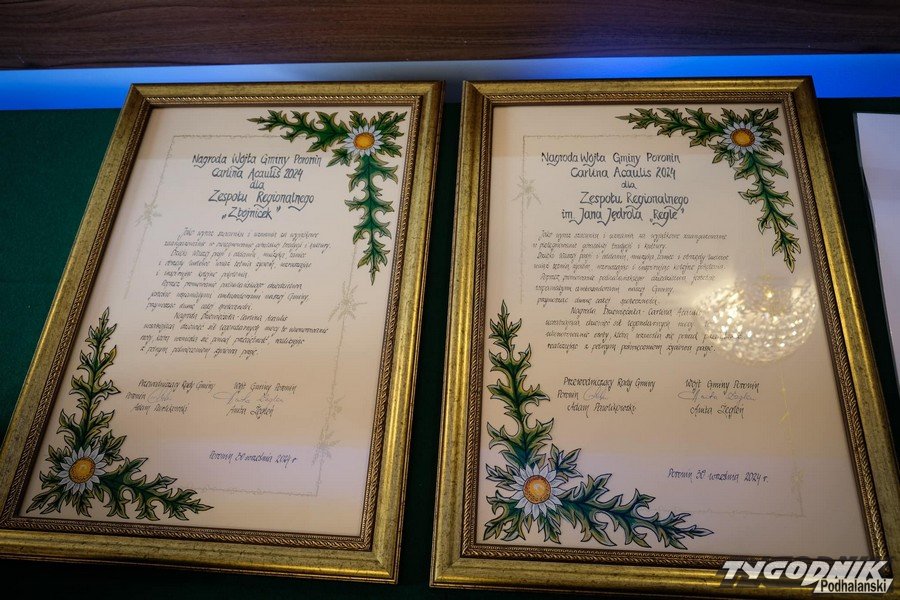 Doroczna nagroda Wójta Gminy Poronin Carlina Acaulis trafiła do dwóch zespołów regionalnych - "Regle" z Poronina i "Zbójnicka" ze Zębu.