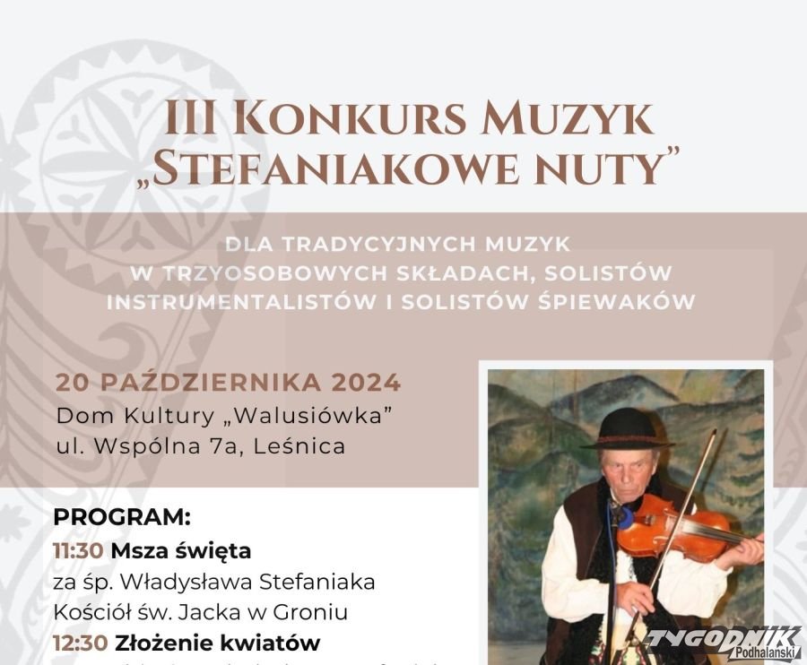 Do 15 października czekają organizatorzy III Konkursu Muzyk "Stefaniakowe nuty" na zgłoszenia uczestników.