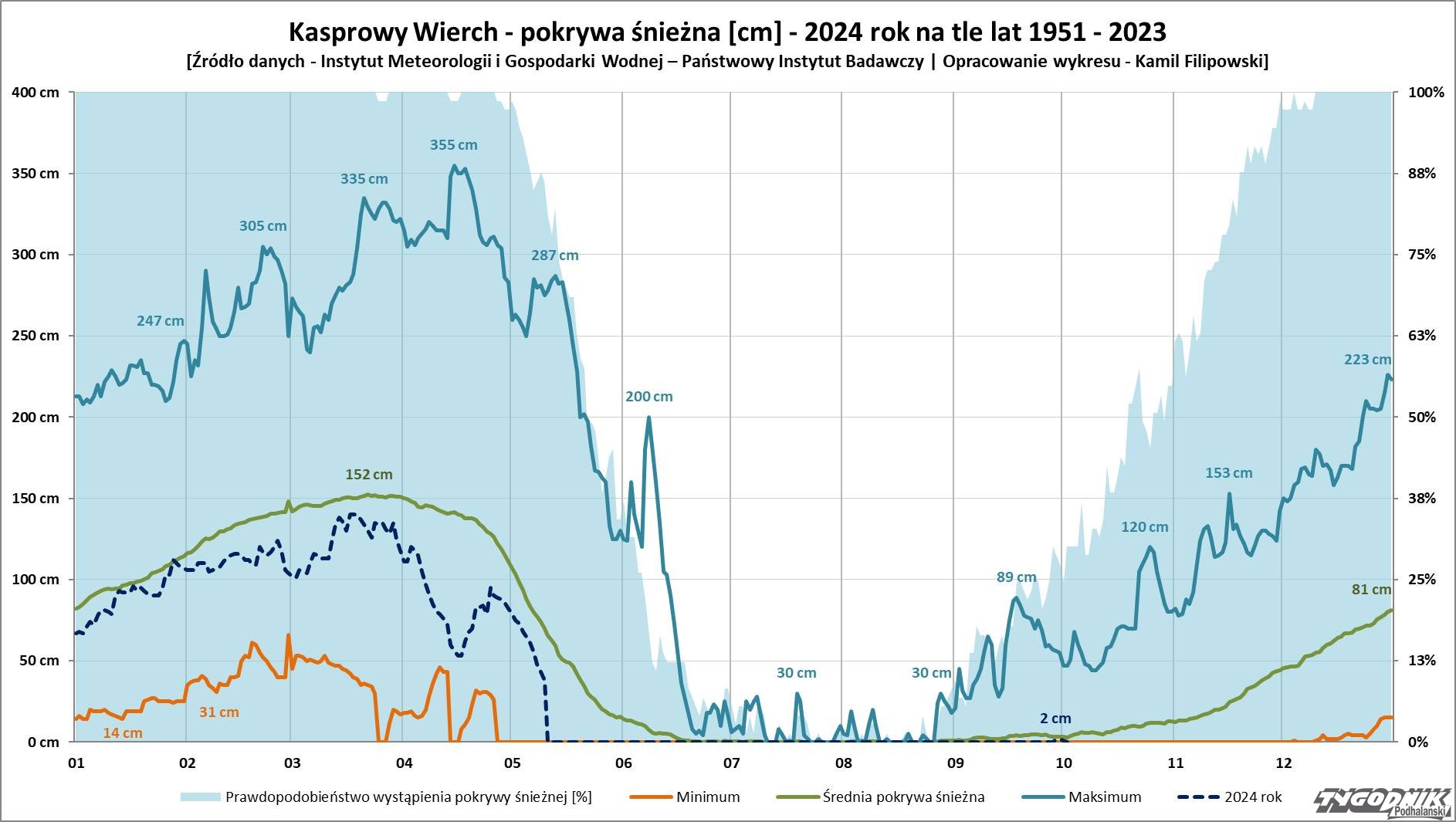 W tym roku na Kasprowym mniej śniegu niż zwykle. Zobaczcie wykres