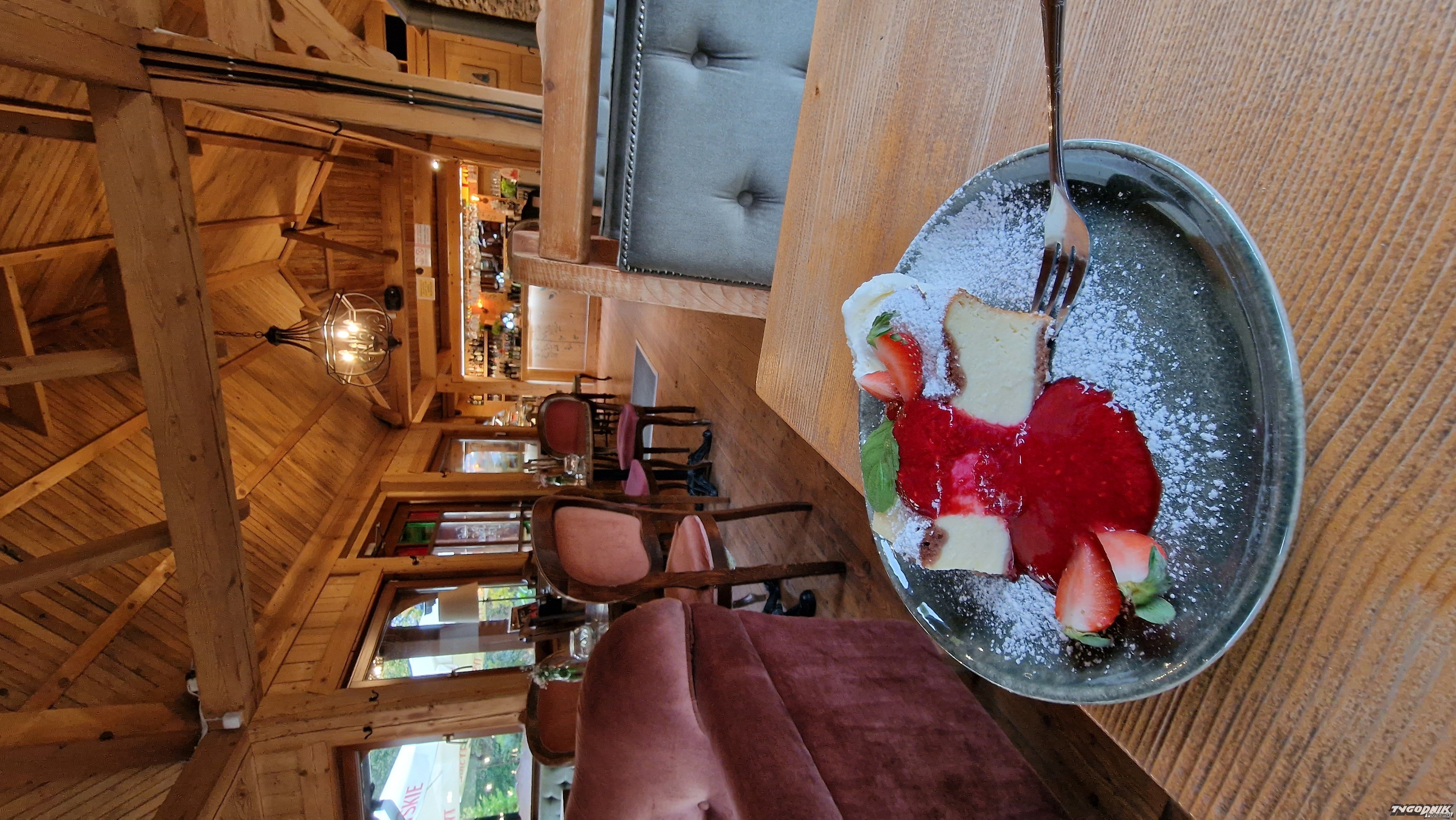 Pokusa zdecydowanie oddaje uczucia, które towarzyszą nam, gdy rzucamy okiem na gablotę z łakociami. Na nic dieta odchudzająca. Sernik z polewą malinową i gałką lodów wygrywa z nami. Pyszny. Bardzo ładne wnęrze. Szczawnicki, elegancki wystrój. Stylowe meble. Wygodne fotele i kanapy. Piękny, drewniany bar. Miła obsługa. W karcie prócz słodkości, ciepłe przekąski. Np. Bruschetta z zielonym pesto i pomidorami, albo tosty po góralsku z oscypkiem, boczkiem i żurawiną. Wygodne fotele i kanapy. Super miejsce na chwilę odpoczynku przy świetnej kawie... i serniku rzecz jasna. Czekamy na kolejne Wasze propozycje. Którą kawiarenkę teraz mamy odwiedzić ?