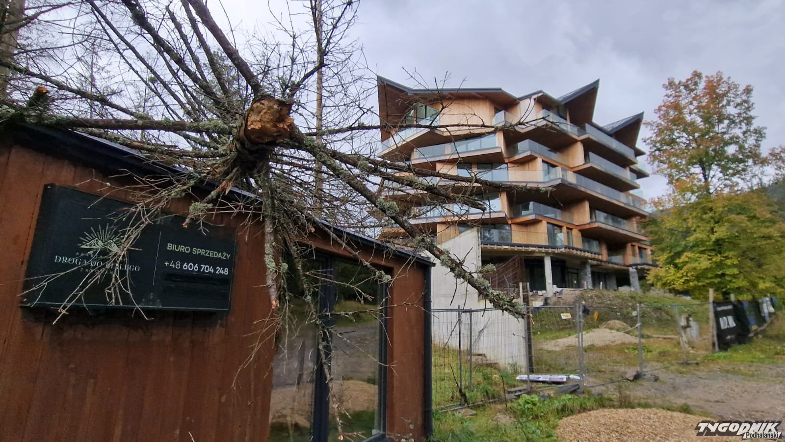 Drzewo spadło na biuro sprzedaży tatrzańskiego Sky Towera na Drodze do Białego (WIDEO)