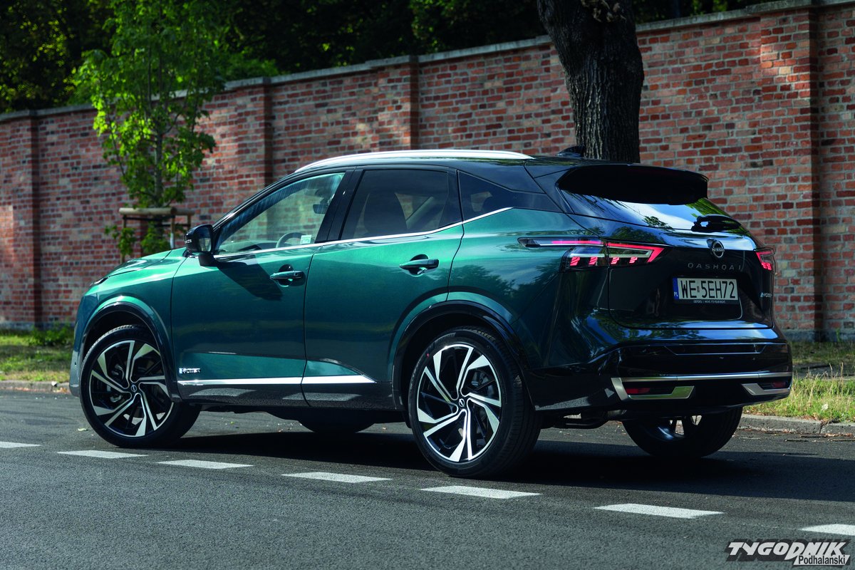 Na szczycie cennika plasuje się Qashqai Tekna +, który dostępny jest wyłącznie z mocniejszym silnikiem 158 KM. Wyposażenie tej odmiany obejmuje na przykład wykończenie wnętrza alcantarą i pikowaną skórą, w pełni elektryczne fotele przednie z masażem i 20-calowe felgi. Za Qasqaia Tekna + zapłacić należy przynajmniej 175 650 złotych.