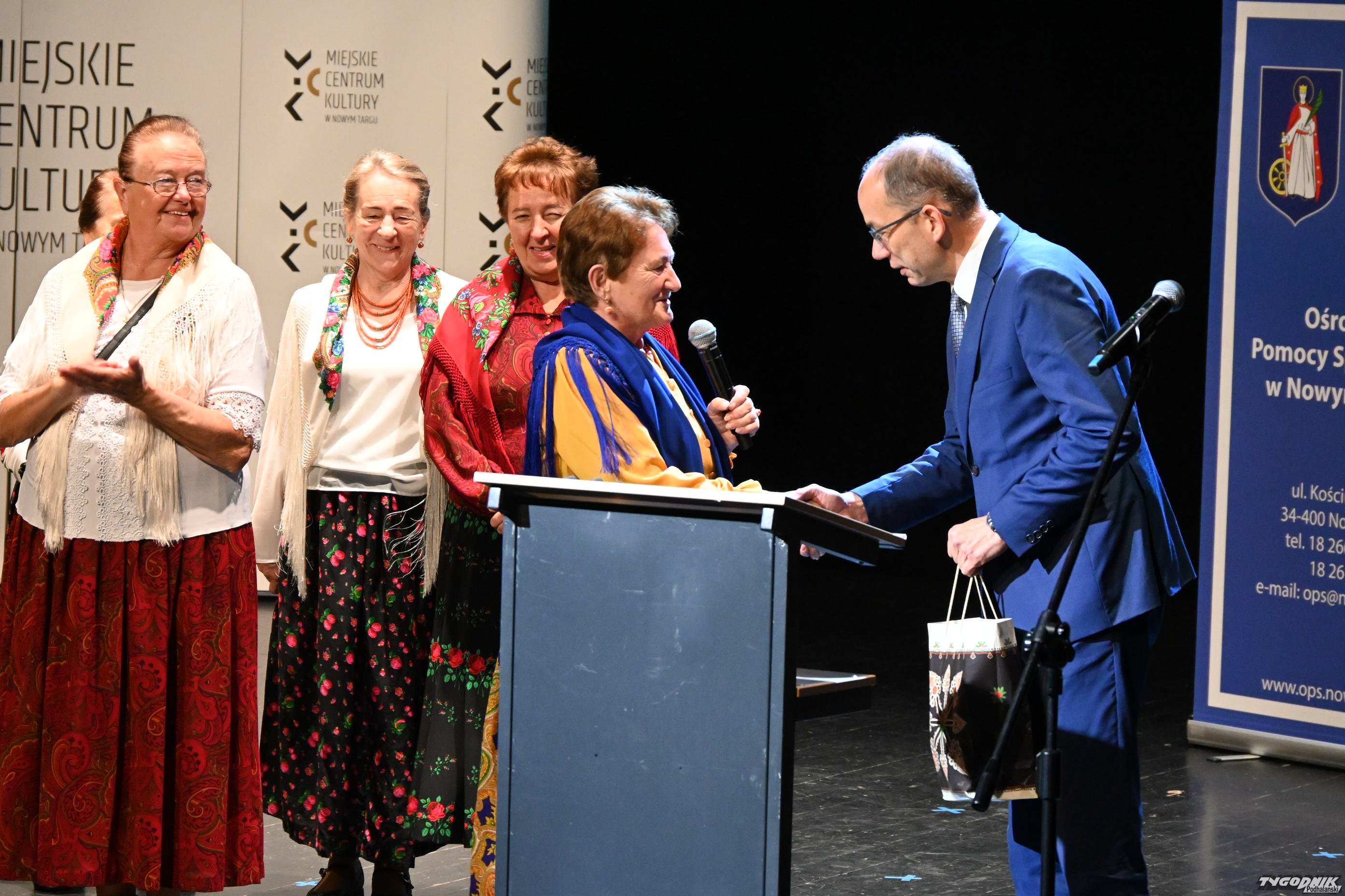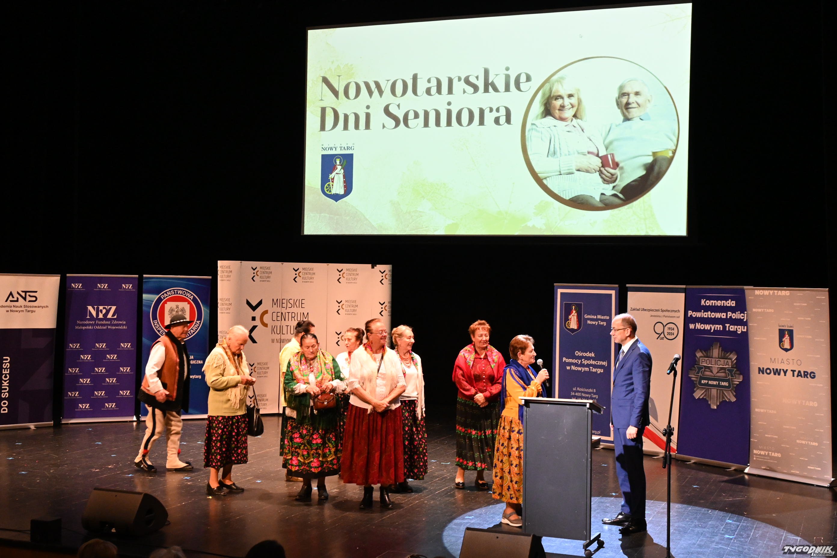Nowotarskie Dnia Seniora odbywały się 14 października w Miejskim Centrum Kultury w Nowym Targu. Psycholog dr Anna Podolak z Akademii Nauk Stosowanych w Nowym Targu wystąpiła z wykładem pt. "Współczesny świat w obliczu przekazywania tradycji, wiary i wartości - Różnica pokoleń". Seniorzy mogli też dowiedzieć się informacji praktycznych zebranych pod hasłem "ZUS dla Seniora" i o Narodowym Funduszu Zdrowia. Na scenie widowiskowej świetny pokaz fitness dały członkinie nowotarskiego Klubu Seniora, a członkowie Klubu z Białego Dunajca zaśpiewali po góralsku. Do "miasta" przyjechali w strojach regionalnych.