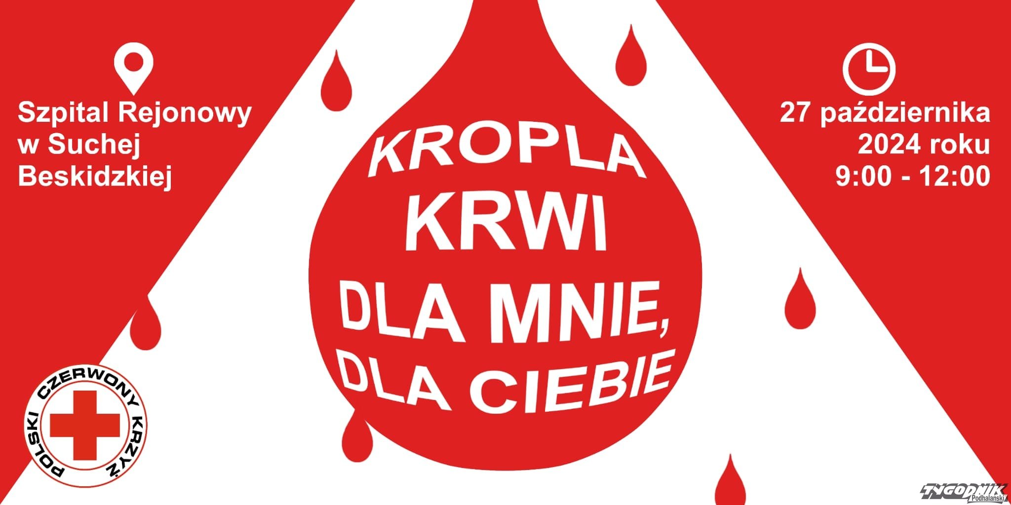 Klub Honorowych Dawców Krwi PCK "Nadzieja" w Suchej Beskidzkiej organizuje akcję krwiodawstwa.