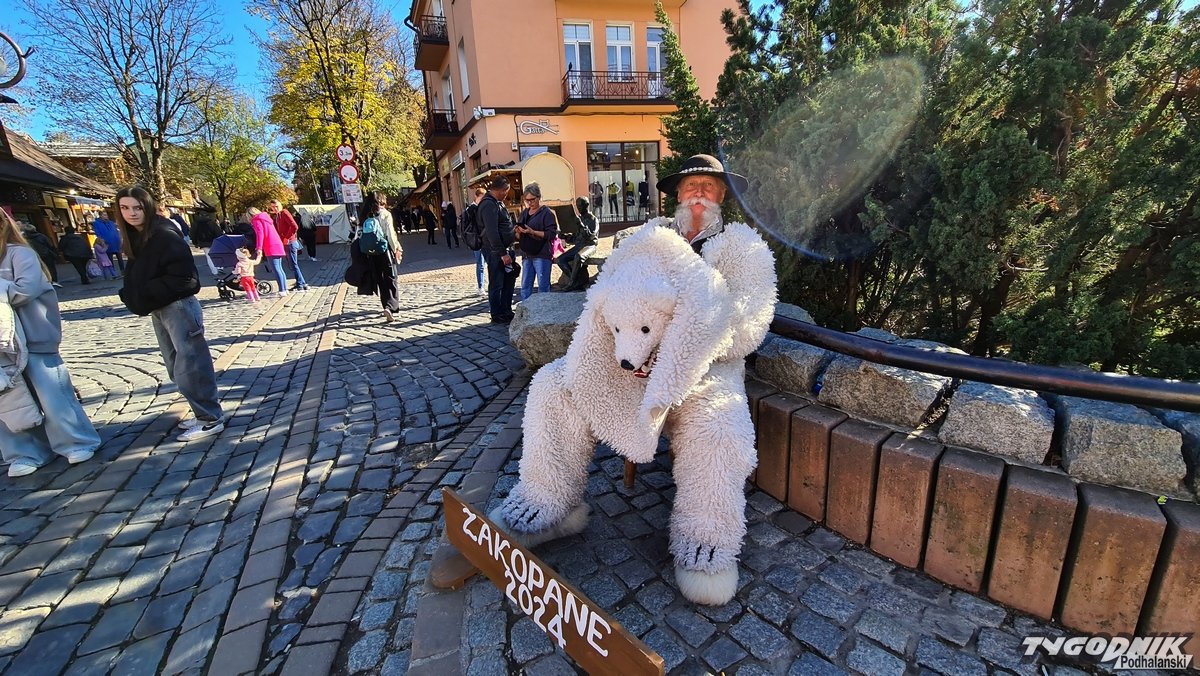 Mamy babie lato, ale biały miś z Krupówek powoli w kościach czuje już zimę.
