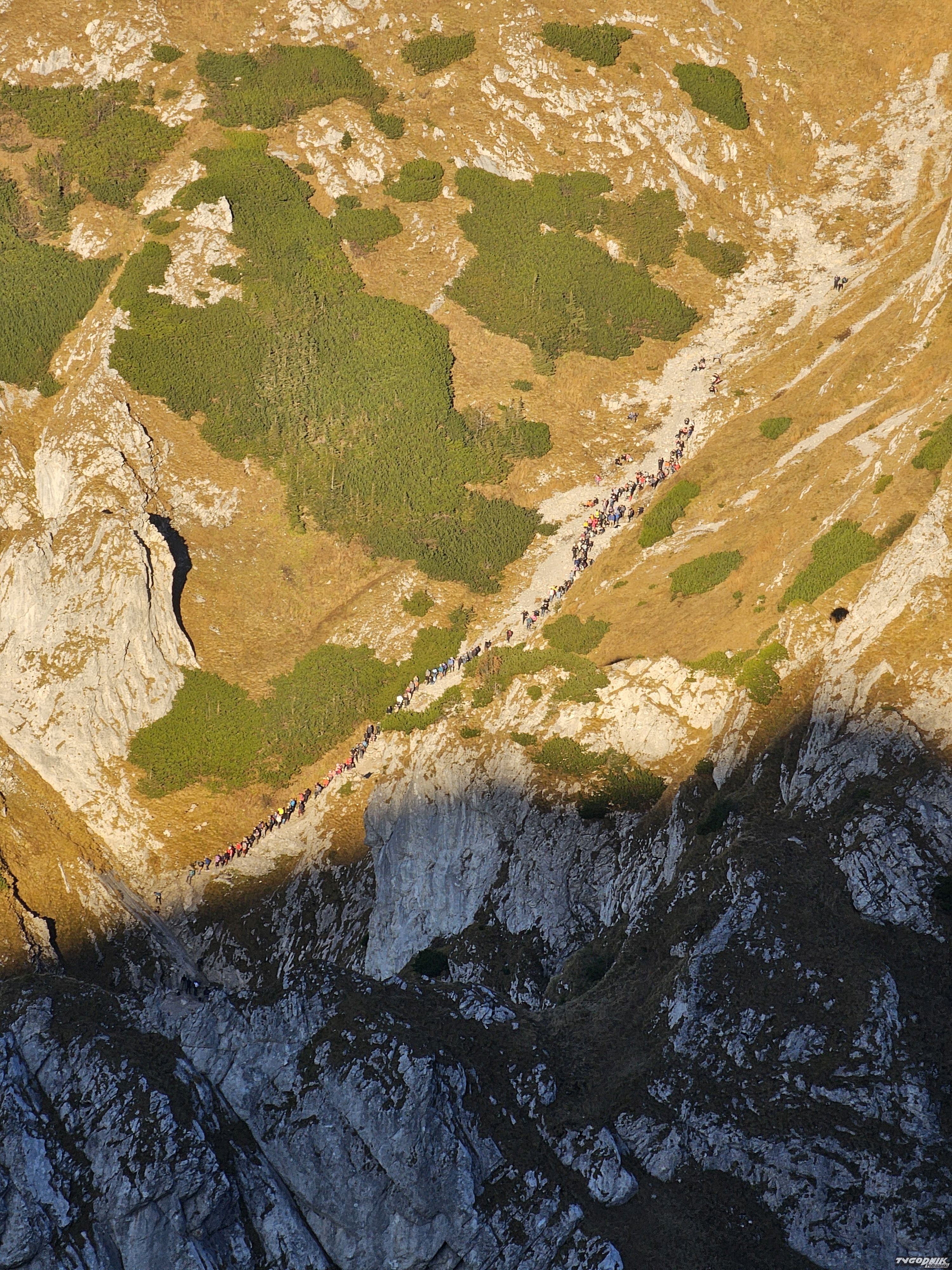 A teraz prosto z samochodu walą "turysty" na Giewont,albo i na Rysy i w trampkach.Zobaczą kawałek łańcuch pod Giewontem,albo drabinkę na "Koziej" i dostają tego czego dostała pewna Dama ze Śląska jak się zawiesiła głową w dół na łańcuchu na Śwnicę od strony Zawratu.Wtedy to się zrobił zator.HOUK!!!