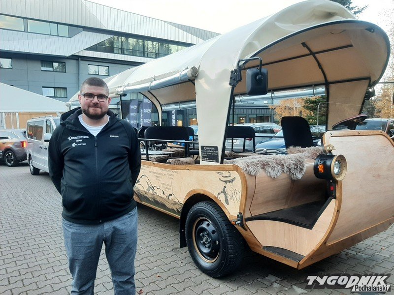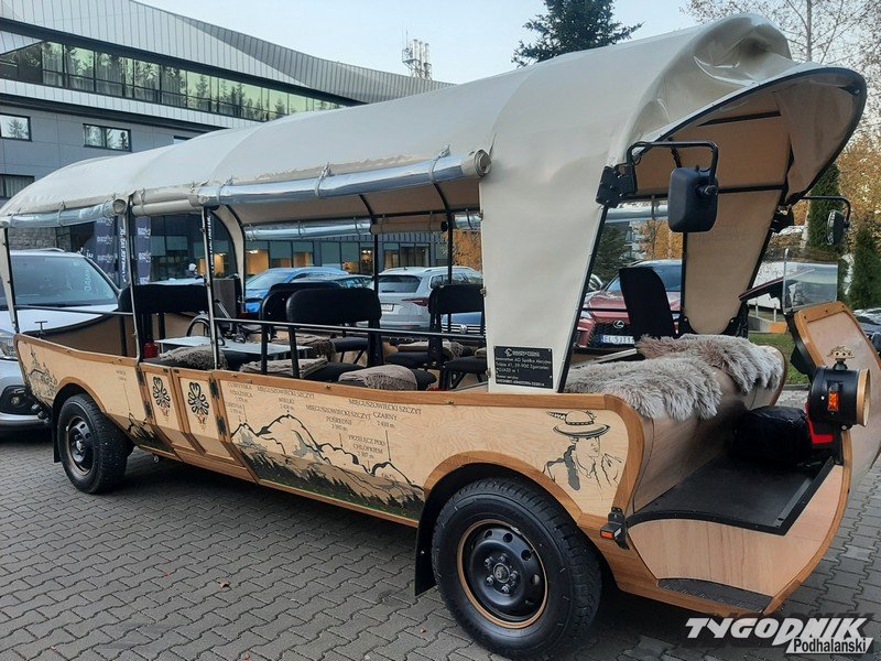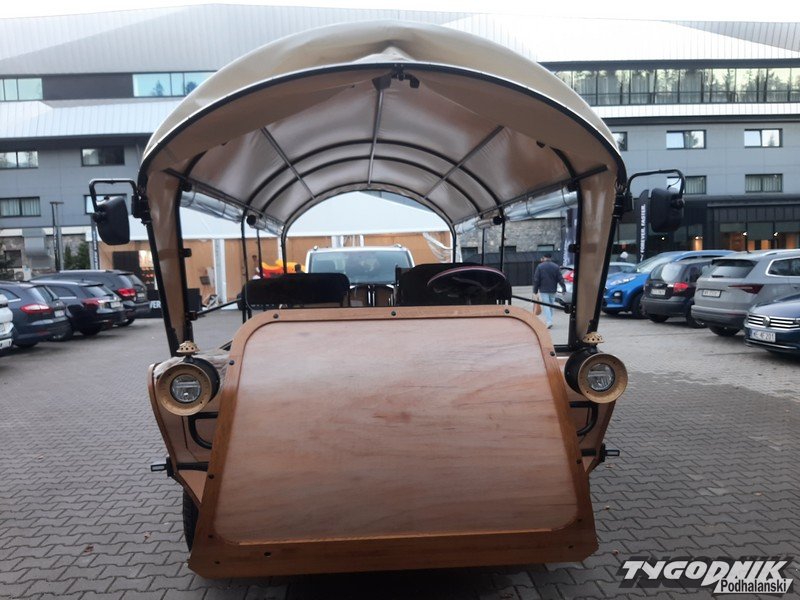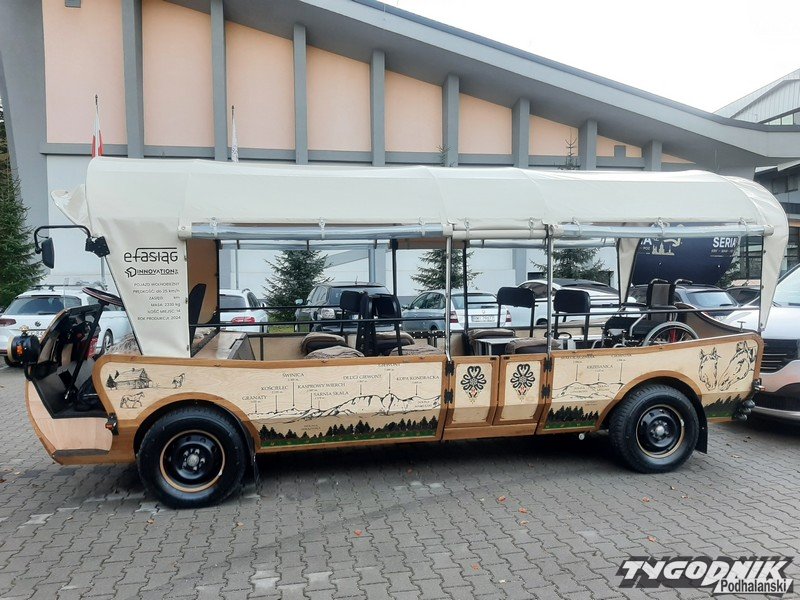 Przed hotelem COS-Zakopane zaparkował dziś elektryczny fasiąg, czy zastąpi koński transport do Morskiego Oka?