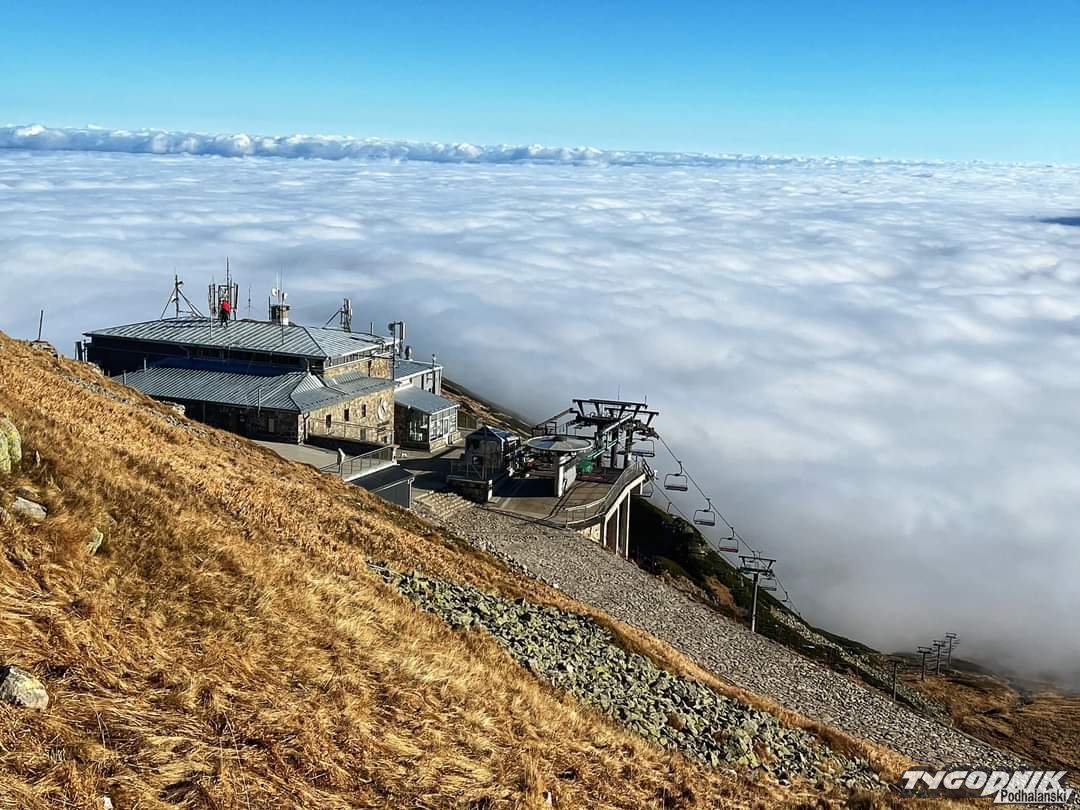 W Tatrach świeci słońce. Nad Podhalem mgły i chmury