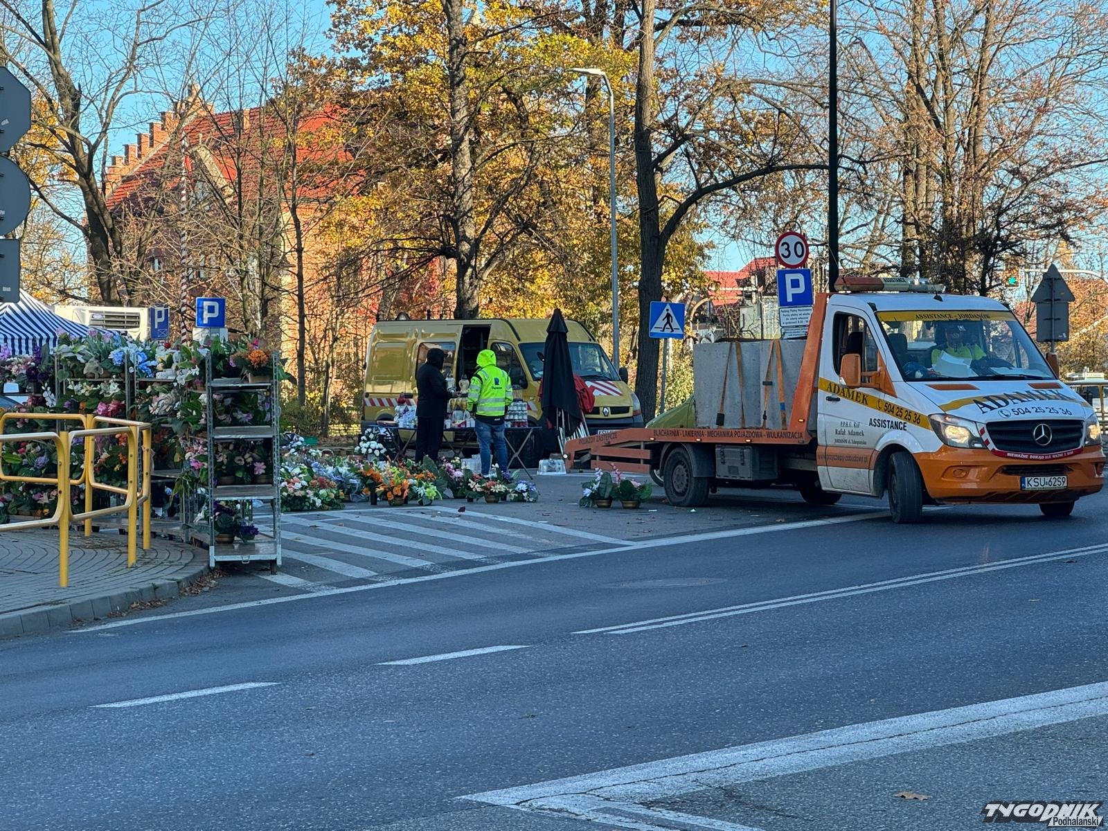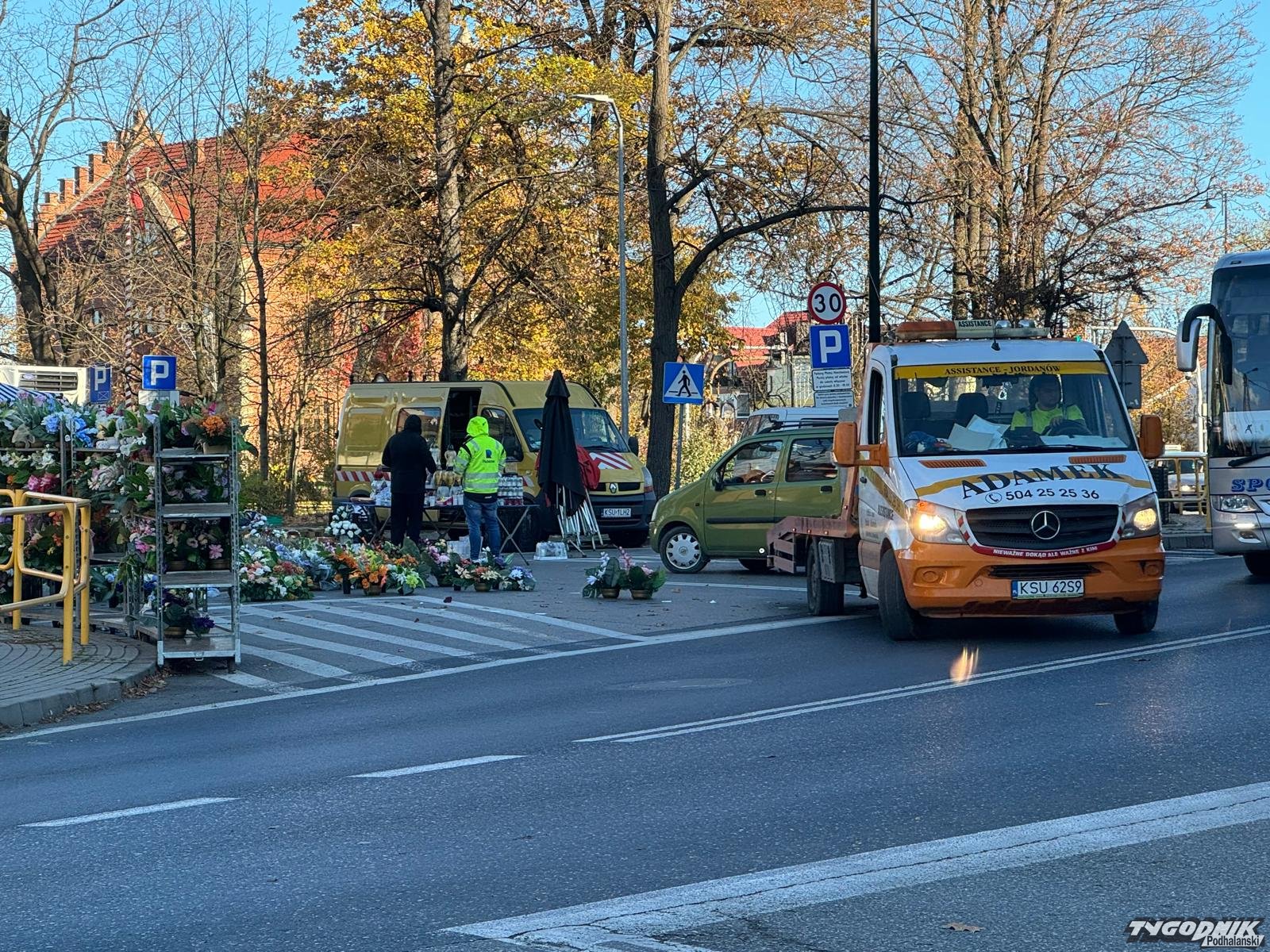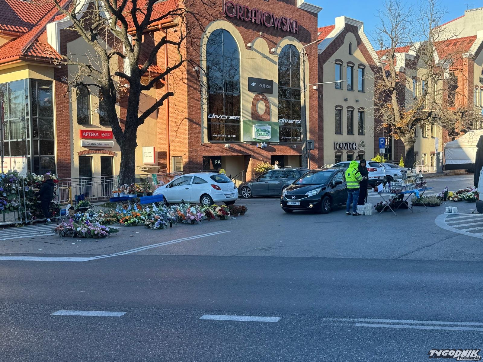 W Jordanowie handel wyległ na ulicę i zajął pół skrzyżowania