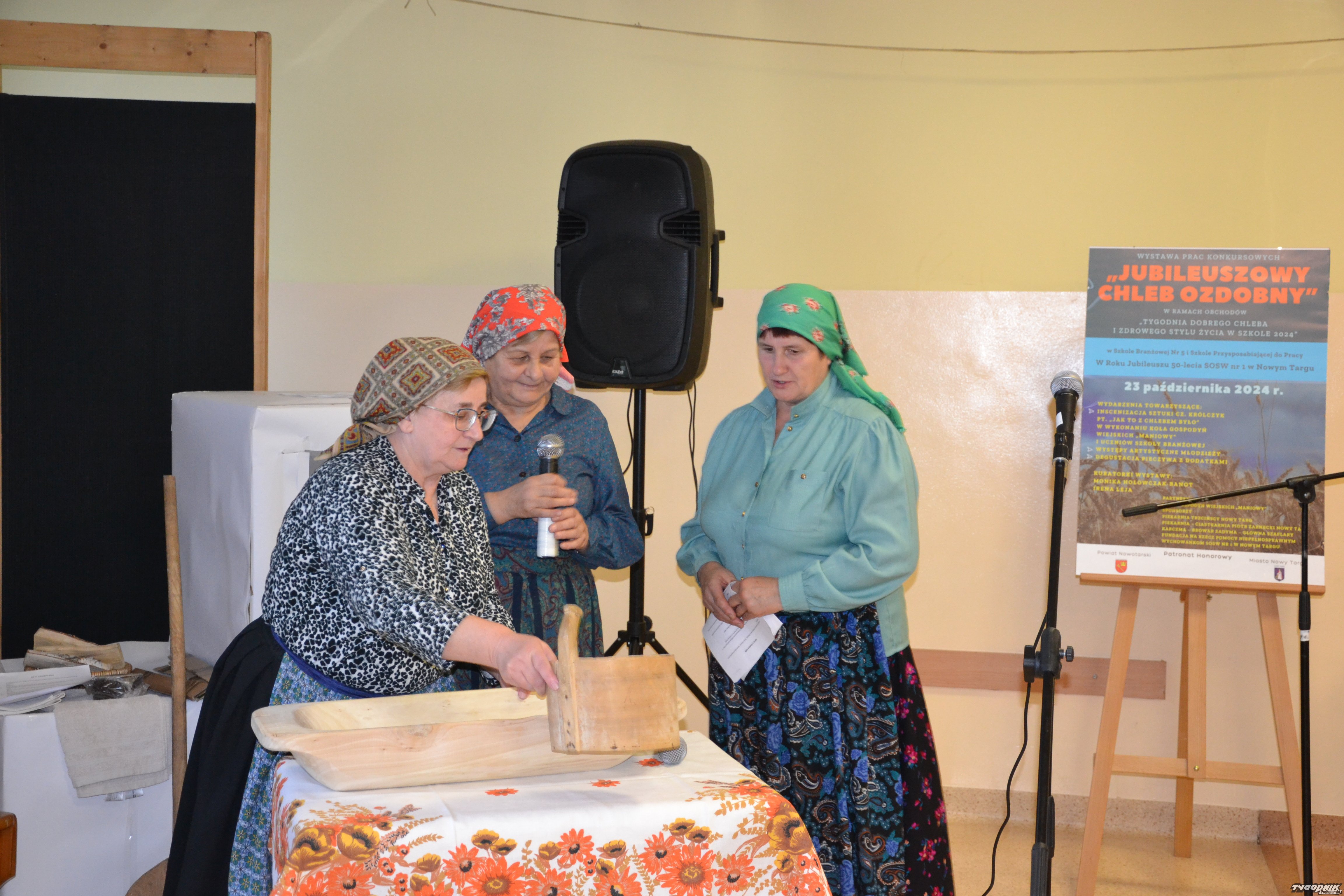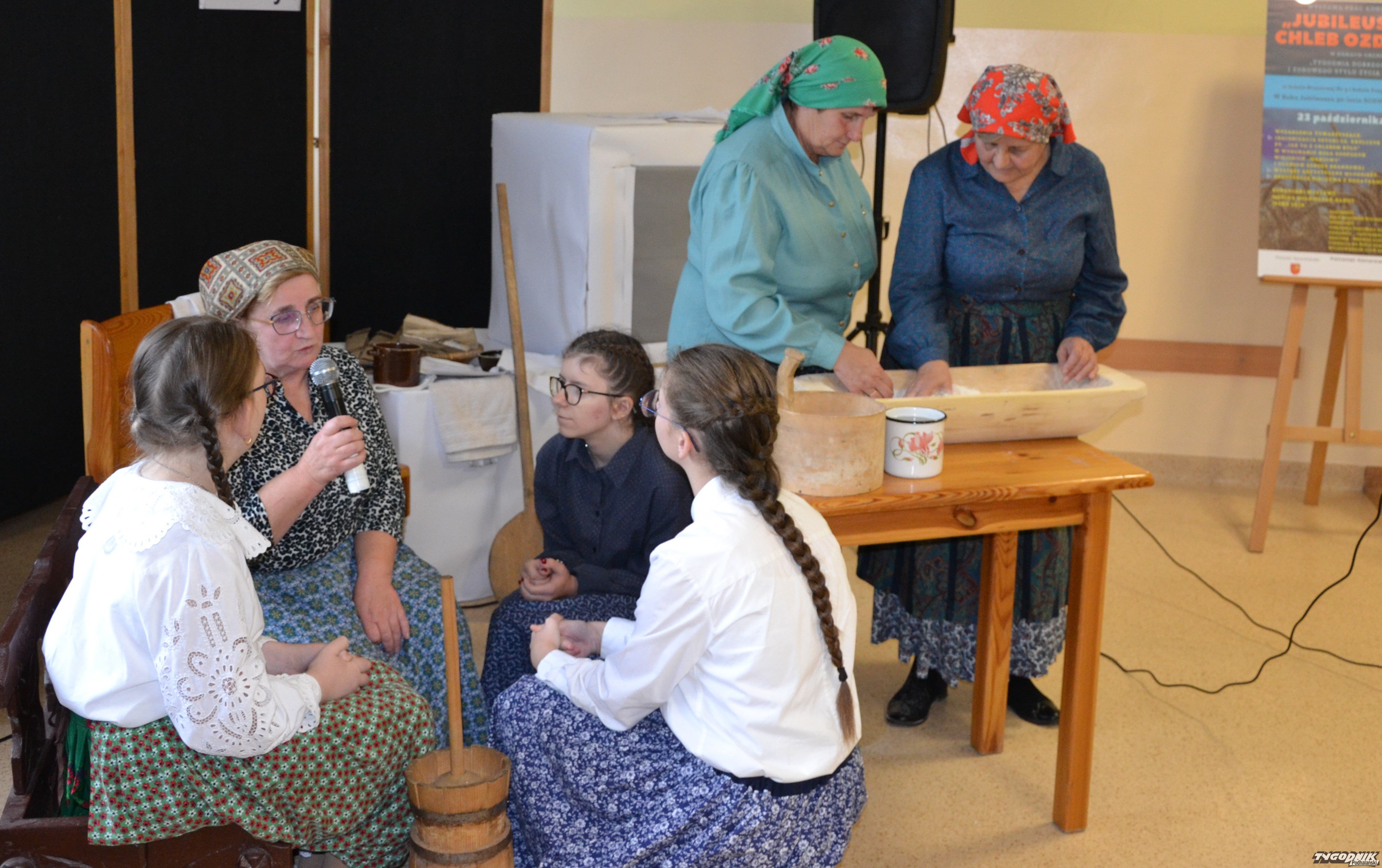 Goście obejrzeli też sztukę „Jak to z chlebem było” napisaną gwarą specjalnie na to święto przez Czesławę Królczyk, emerytowaną nauczycielkę tej szkoły a wykonaną przez uczennice wraz z gaździnami Koła Gospodyń Wiejskich „Maniowy”.
